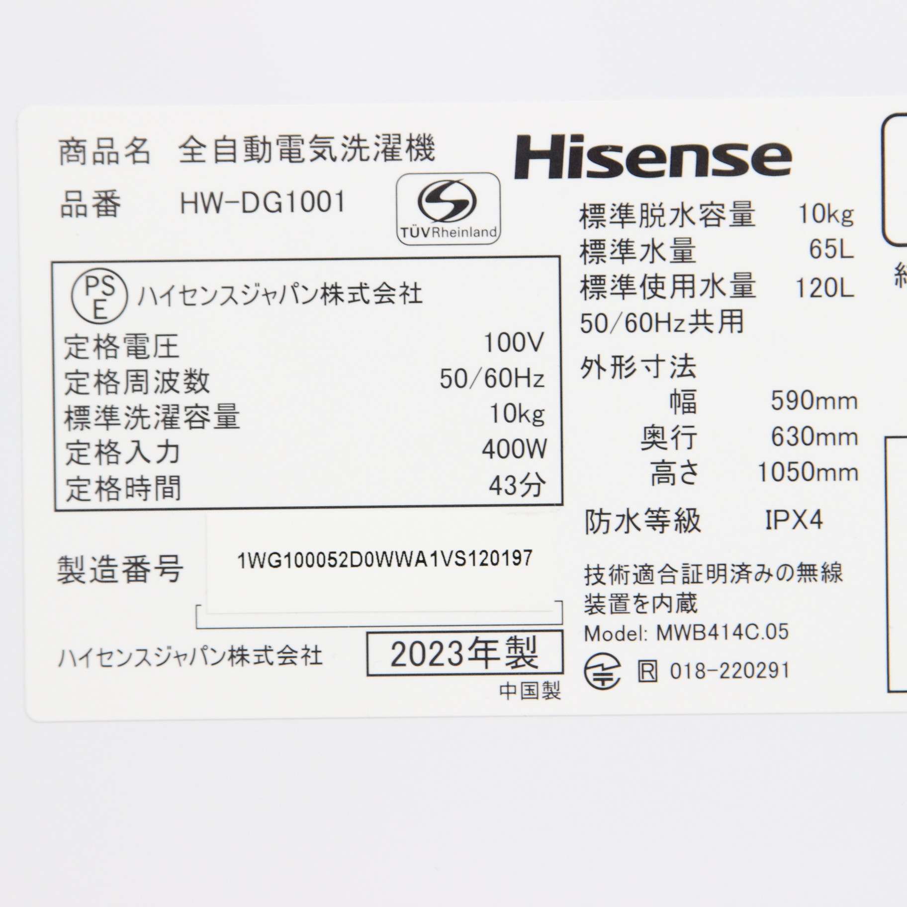 ![Hisense(ハイセンス) 全自動洗濯機 HW-DG1001 [洗濯10.0kg /簡易乾燥(送風機能) /上開き]](https://image.sofmap.com/images/product/large/4580341987346.jpg)