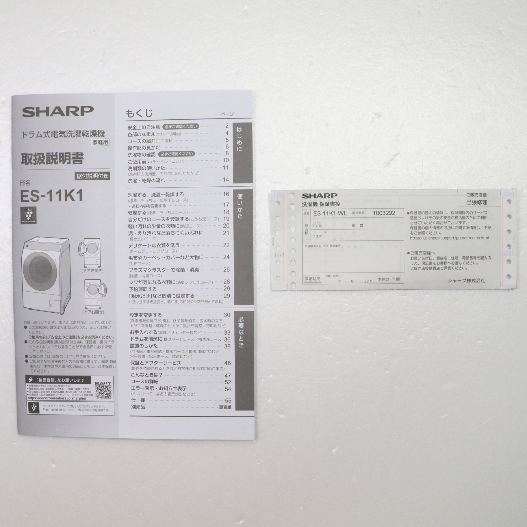 ※1 ・試験機関:(株)総合水研究所 ・試験方法:菌を付着させた試験布の菌の除去率を測定(洗濯〜乾燥運転3kg) ・プラズマクラスターおよび洗濯〜乾燥運転による ・対象部分:ドラム内の衣類 ・試験結果:洗濯〜乾燥運転で除去率99%以上 ・イオン濃度:約350000個/m3(ドラム中央部) ・試験機種:ES-K10B(2023年度モデル、ES-11K1と同等)