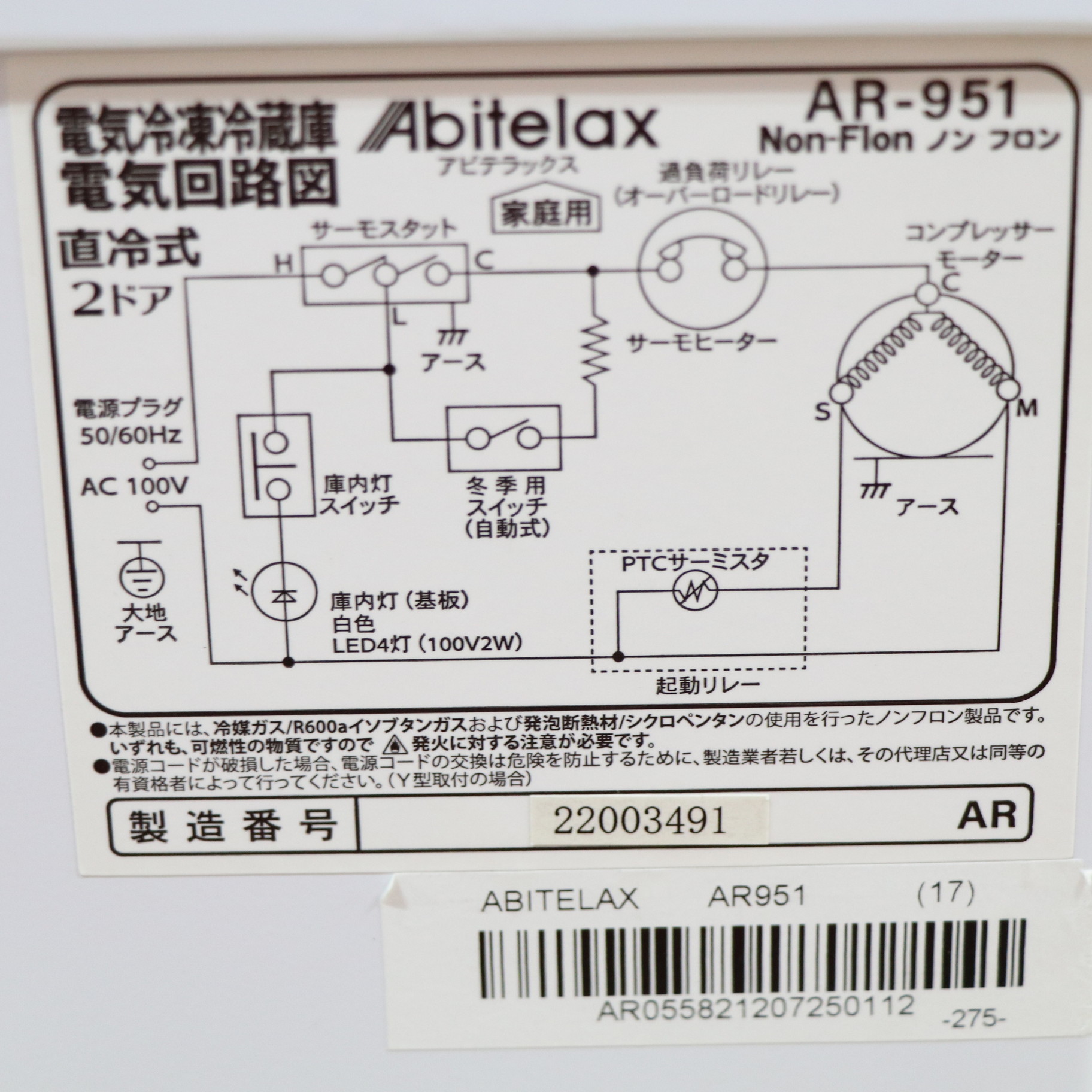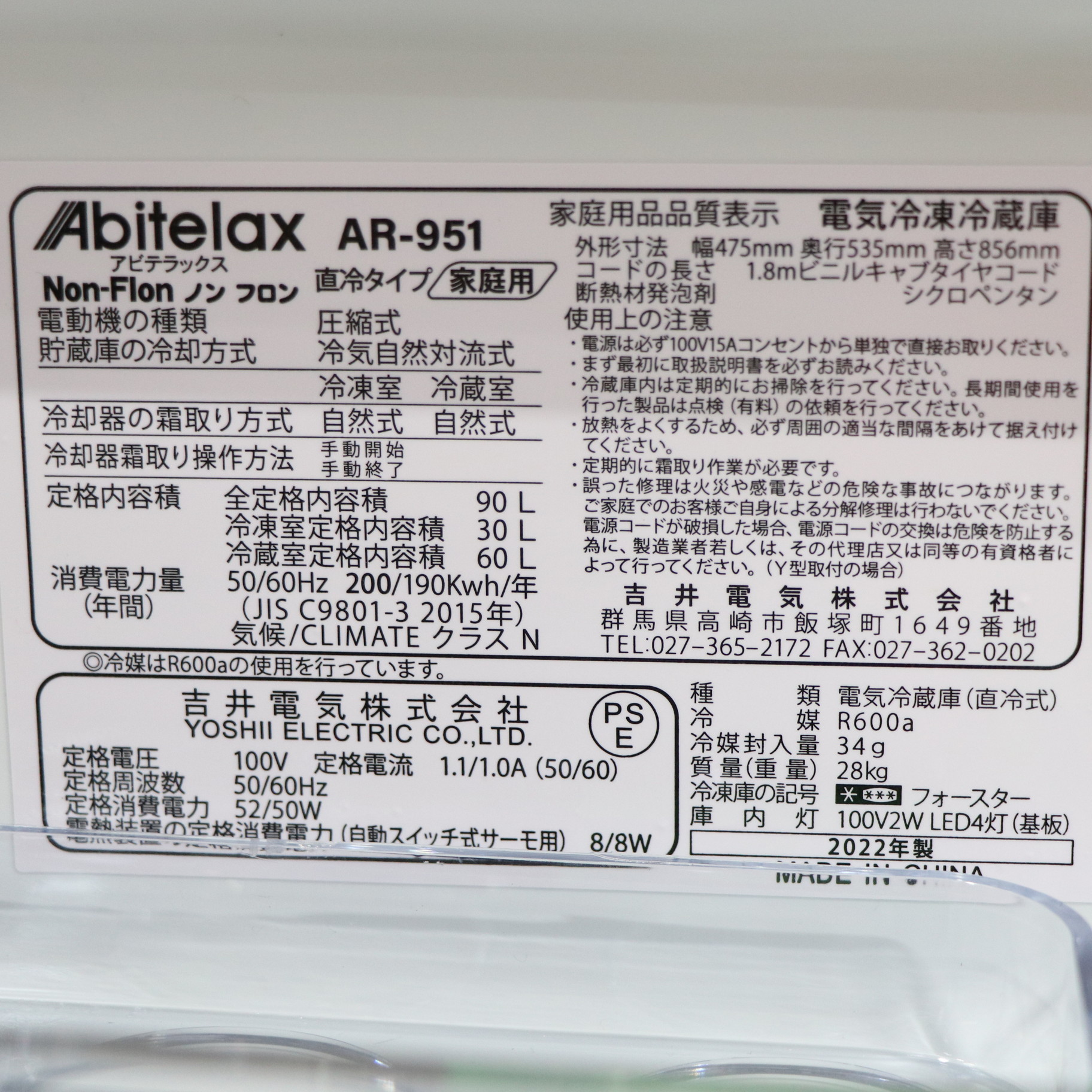〔展示品〕 冷蔵庫 ホワイト AR-951 [幅47.5cm /90L /2ドア /右開きタイプ /2021年]