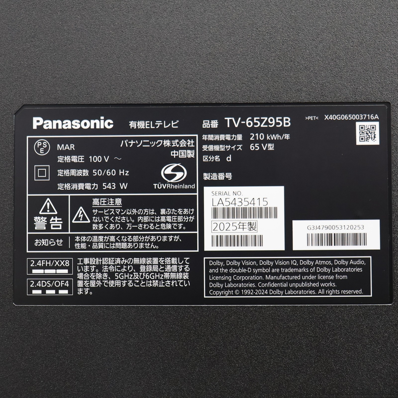 ![Panasonic(パナソニック) 有機ELテレビ VIERA(ビエラ) TV-65Z95B [65V型 /Bluetooth対応 /4K対応 /BS・CS 4Kチューナー内蔵 /YouTube対応]](https://image.sofmap.com/images/product/large/4549980950456.jpg)