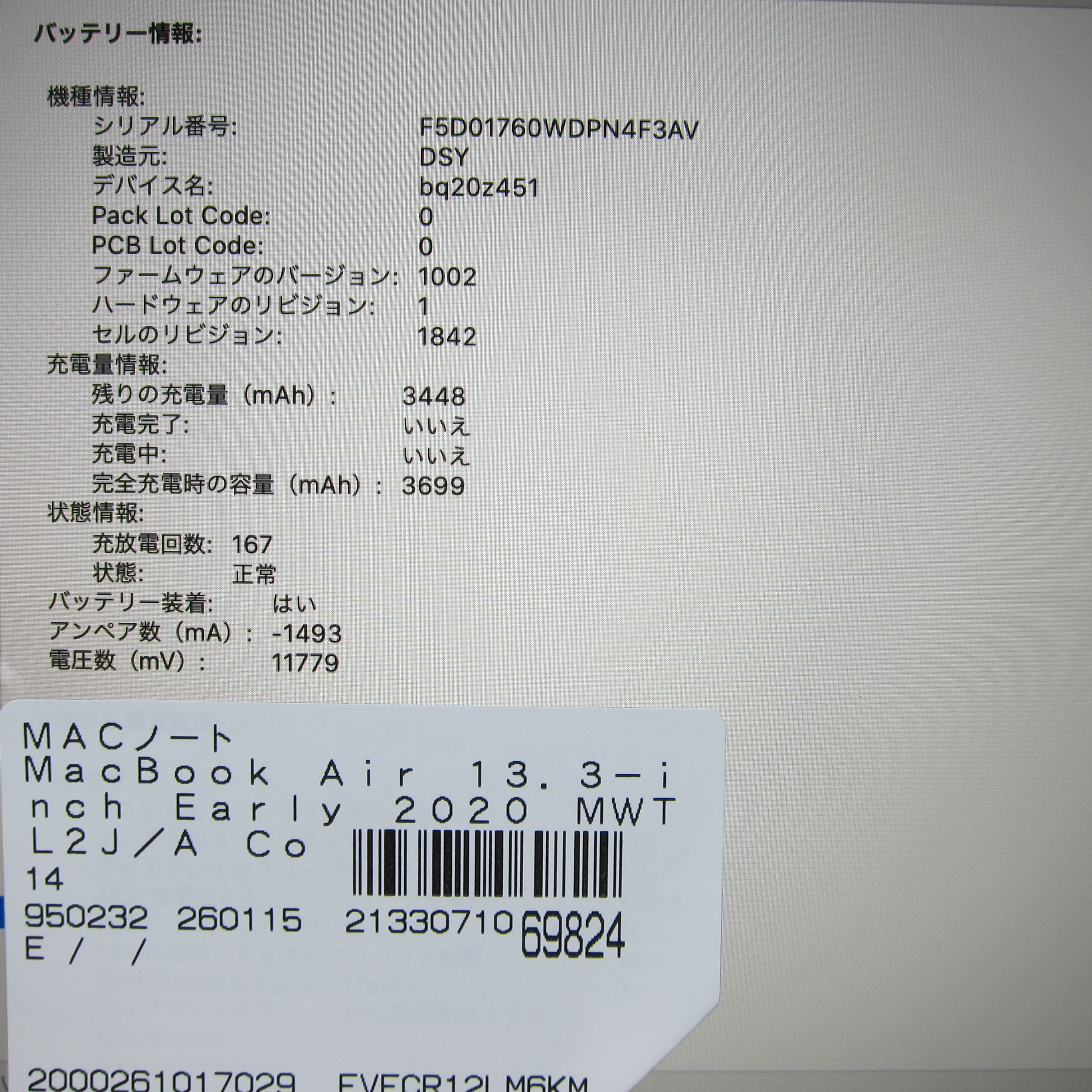 〔中古品〕 MacBook Air 13.3-inch Early-2020 MWTL2J/A Core_i5 1.1GHz 16GB SSD1TB ゴールド 〔10.15 Catalina〕 [グラフィック:Intel Iris Plus Graphics/JISキーボード]