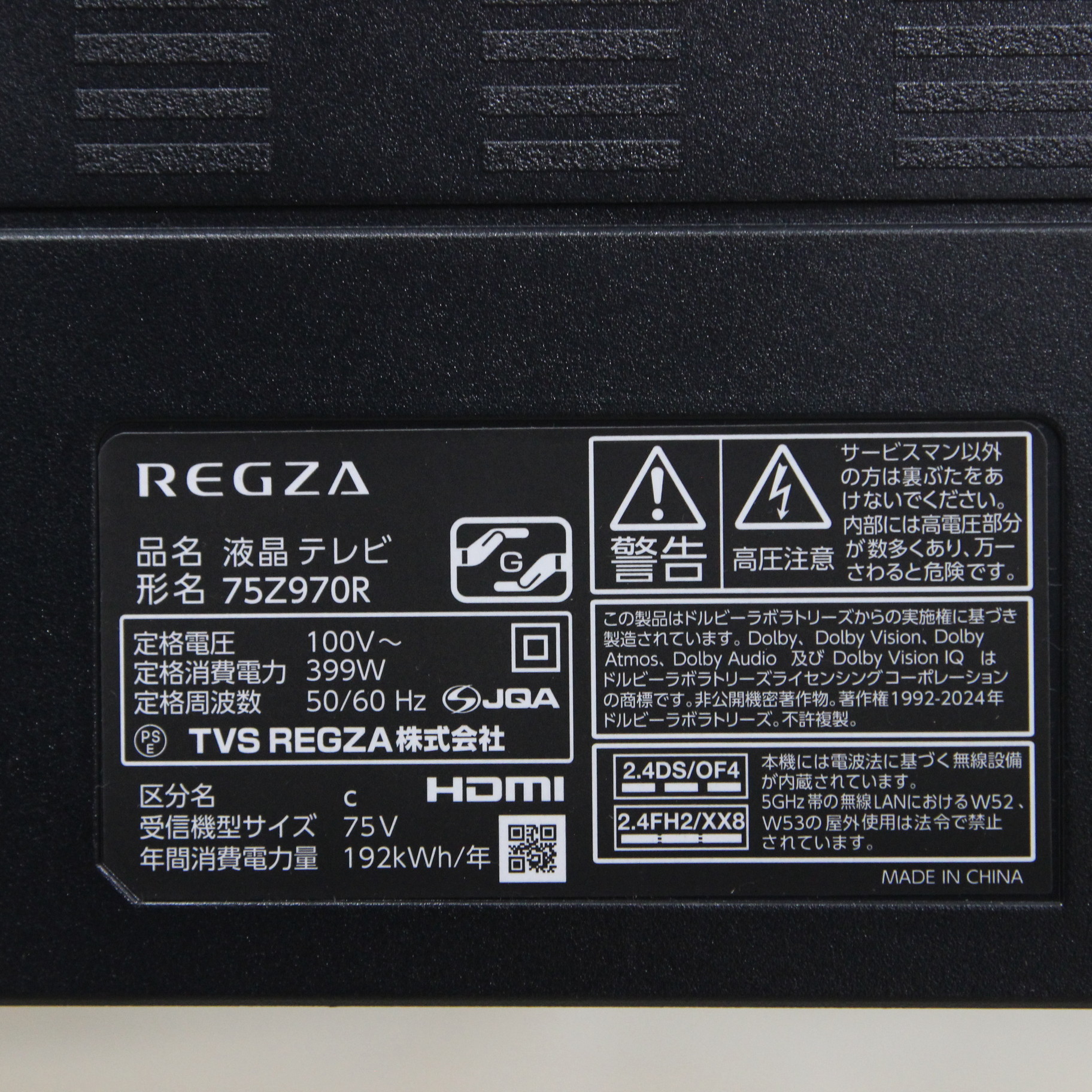 〔展示品〕 液晶テレビ REGZA(レグザ) 75Z970R [75V型 /4K対応 /BS・CS 4Kチューナー内蔵 /YouTube対応]