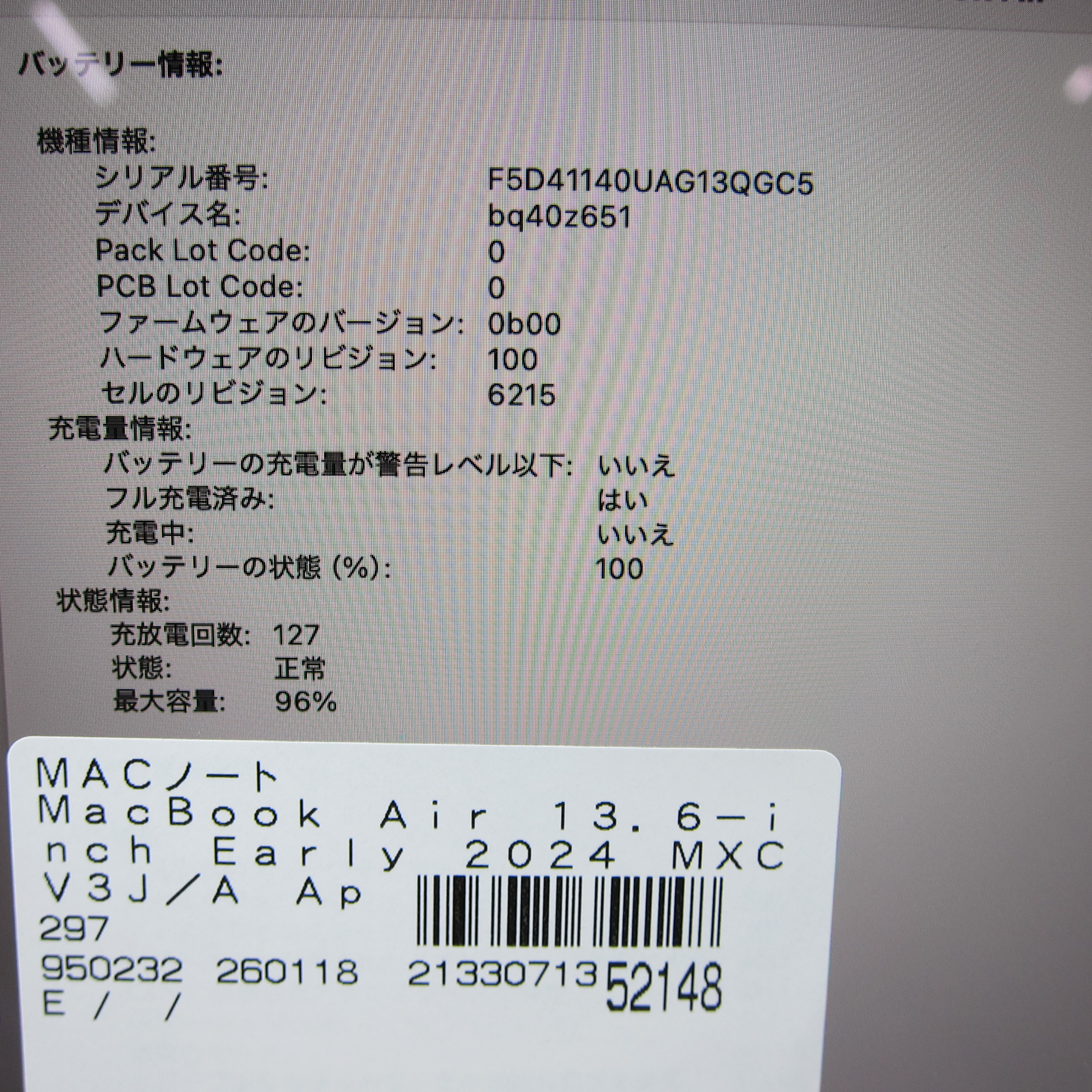 〔中古品〕 MacBook Air 13.6-inch Early-2024 MXCV3J/A Apple M3 8コアCPU_10コアGPU 16GB SSD1TB ミッドナイト 〔15.7 Sequoia〕 [グラフィック:オンボード/JISキーボード]