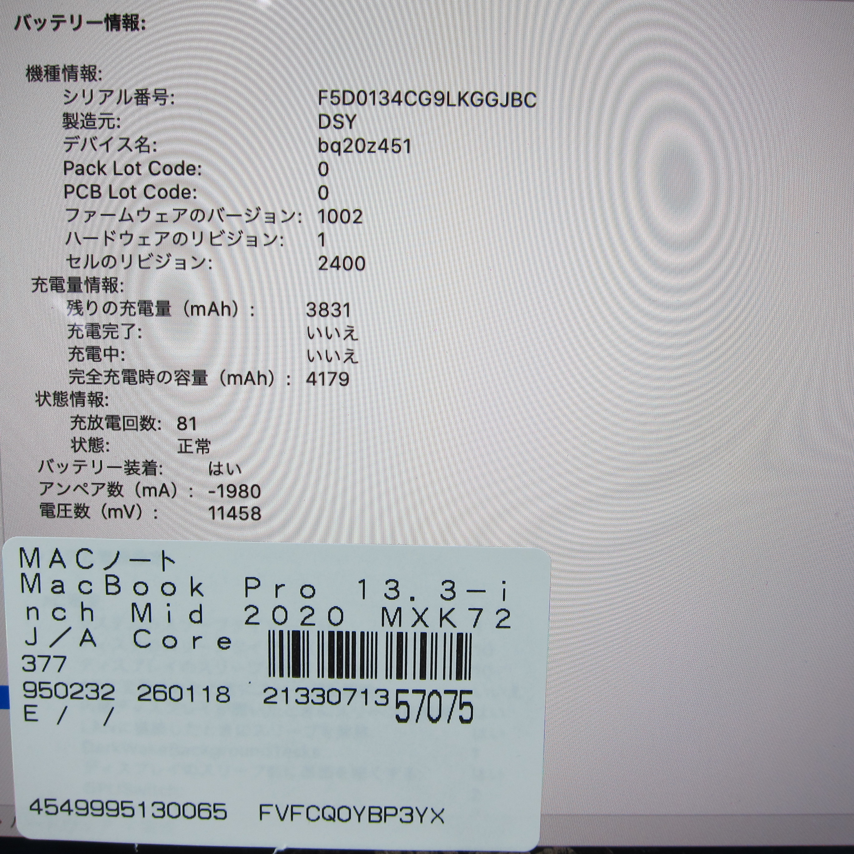 〔中古品〕 MacBook Pro 13.3-inch Mid-2020 MXK72J/A Core_i5 1.4GHz 16GB SSD512GB シルバー 〔10.15 Catalina〕 [グラフィック:Intel Iris Plus Graphics 645(CPU内蔵)/JISキーボード]