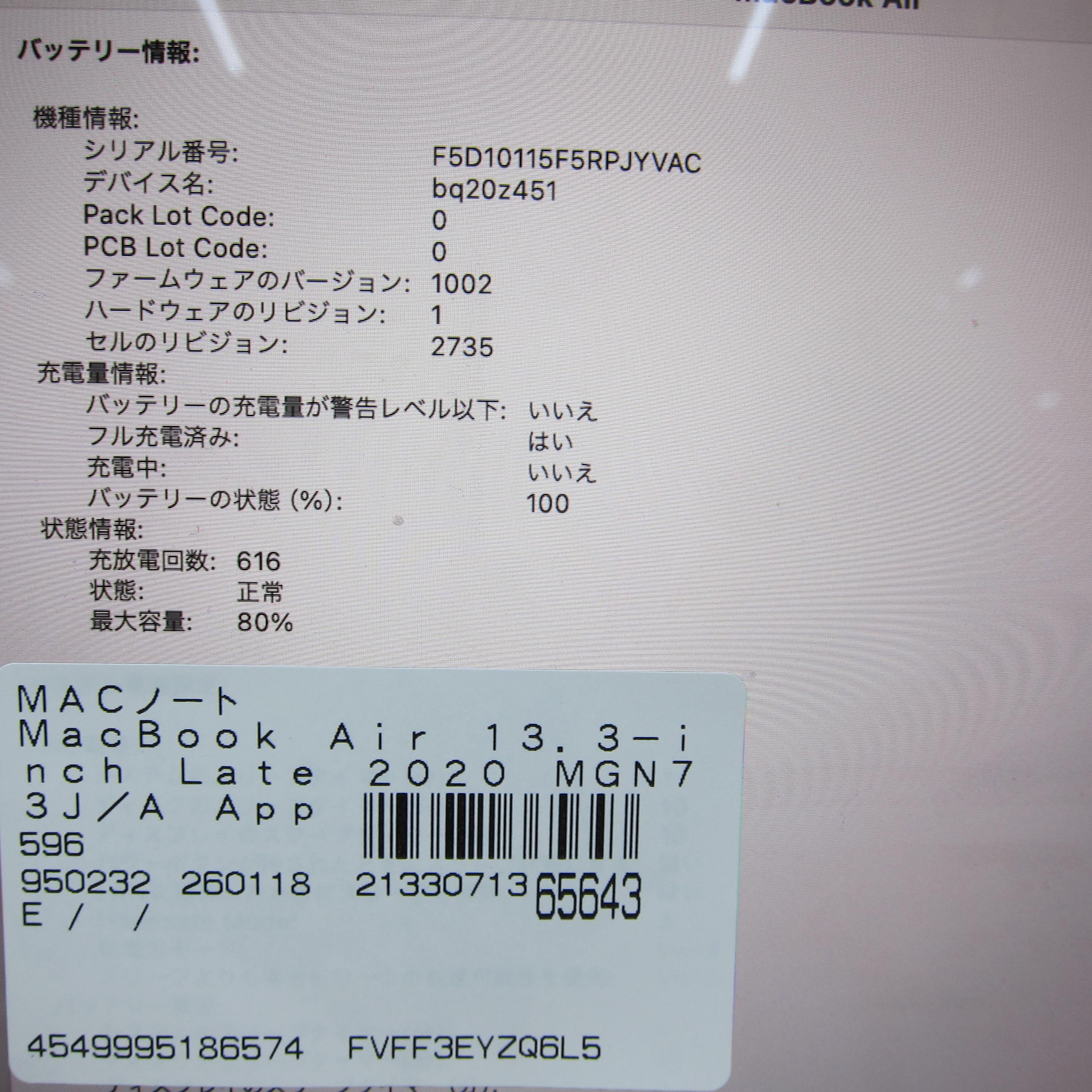 〔中古品(難あり)〕 MacBook Air 13.3-inch Late-2020 MGN73J/A Apple M1 8コアCPU_8コアGPU 8GB SSD512GB スペースグレイ 〔14.7 Sonoma〕 [グラフィック:オンボード/JISキーボード]