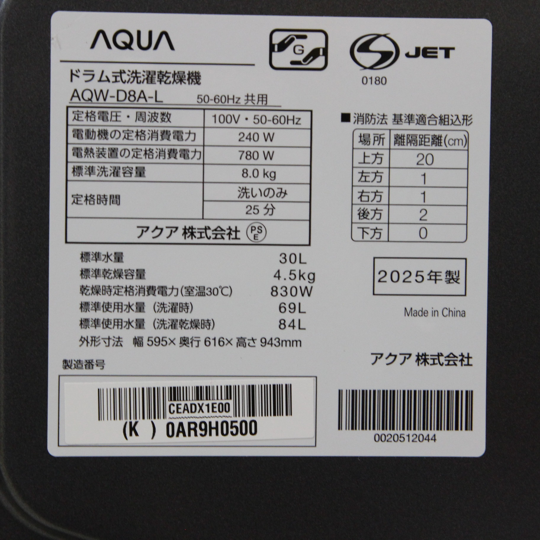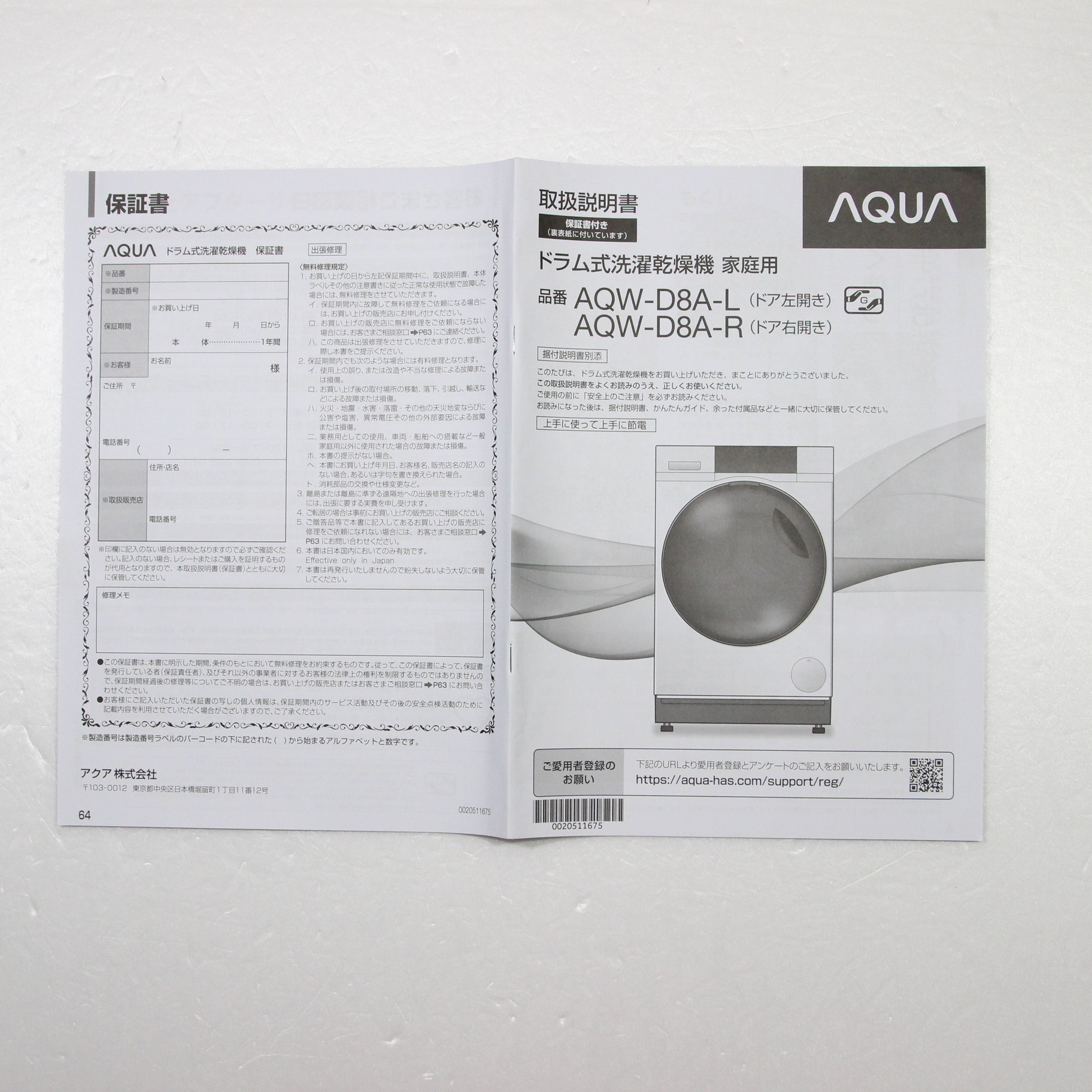 〔展示品〕 ドラム式洗濯乾燥機 AQUA サファイアブラック AQW-D8A-L(K) [洗濯8.0kg /乾燥4.5kg /ヒーター乾燥(水冷・除湿タイプ) /左開き]