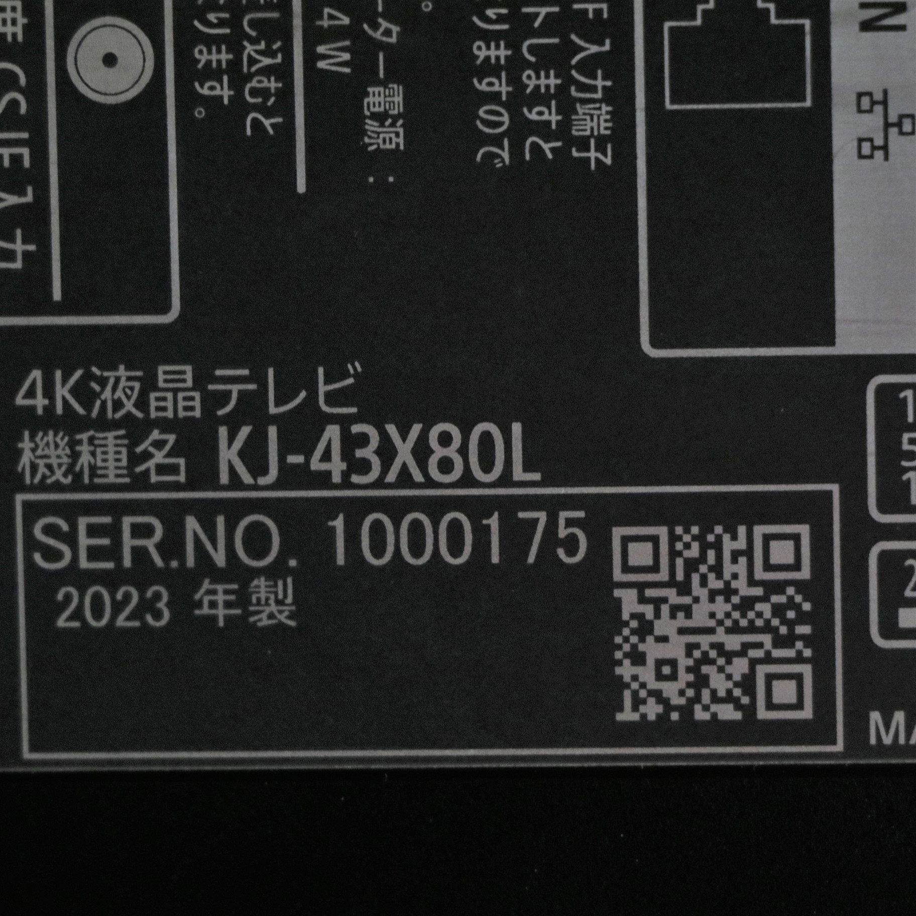 〔展示品〕 液晶テレビ BRAVIA(ブラビア) KJ-43X80L [43V型 /Bluetooth対応 /4K対応 /BS・CS 4Kチューナー内蔵 /YouTube対応]
