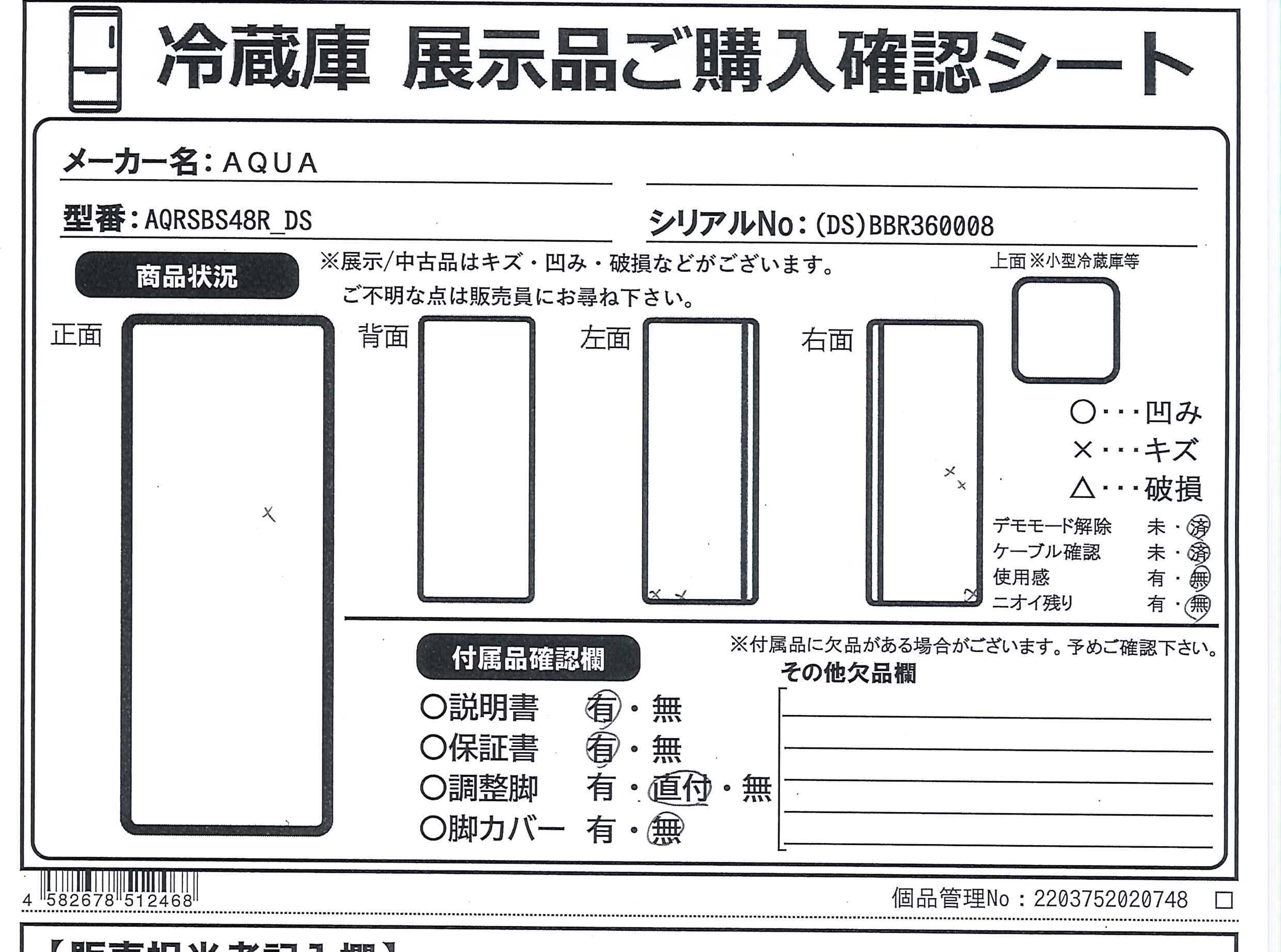 中古商品ランクについて 付属品・商品状態について 〔付属品〕説明書、冷凍室ポケット×3、冷凍室ガラス棚×3、冷凍室ガラス棚(大)、フリーズボックス(上)、フリーズボックス(下)、製氷皿(フタ付)×2、貯氷ボックス、冷蔵室ポケット×3、冷蔵室ガラス棚×3、冷蔵室ガラス棚(大)、フレッシュボックスカバー、フレッシュボックス(上)、フレッシュボックス(下)、卵皿、フリーケース、調節脚×2