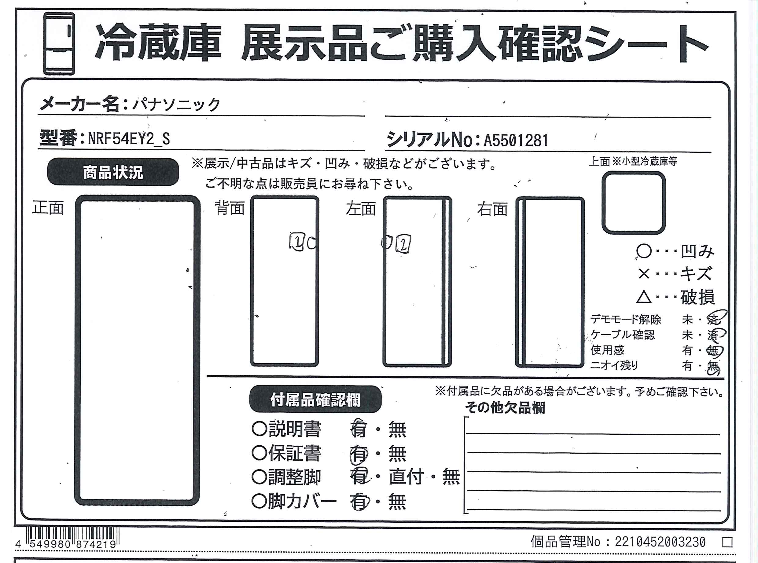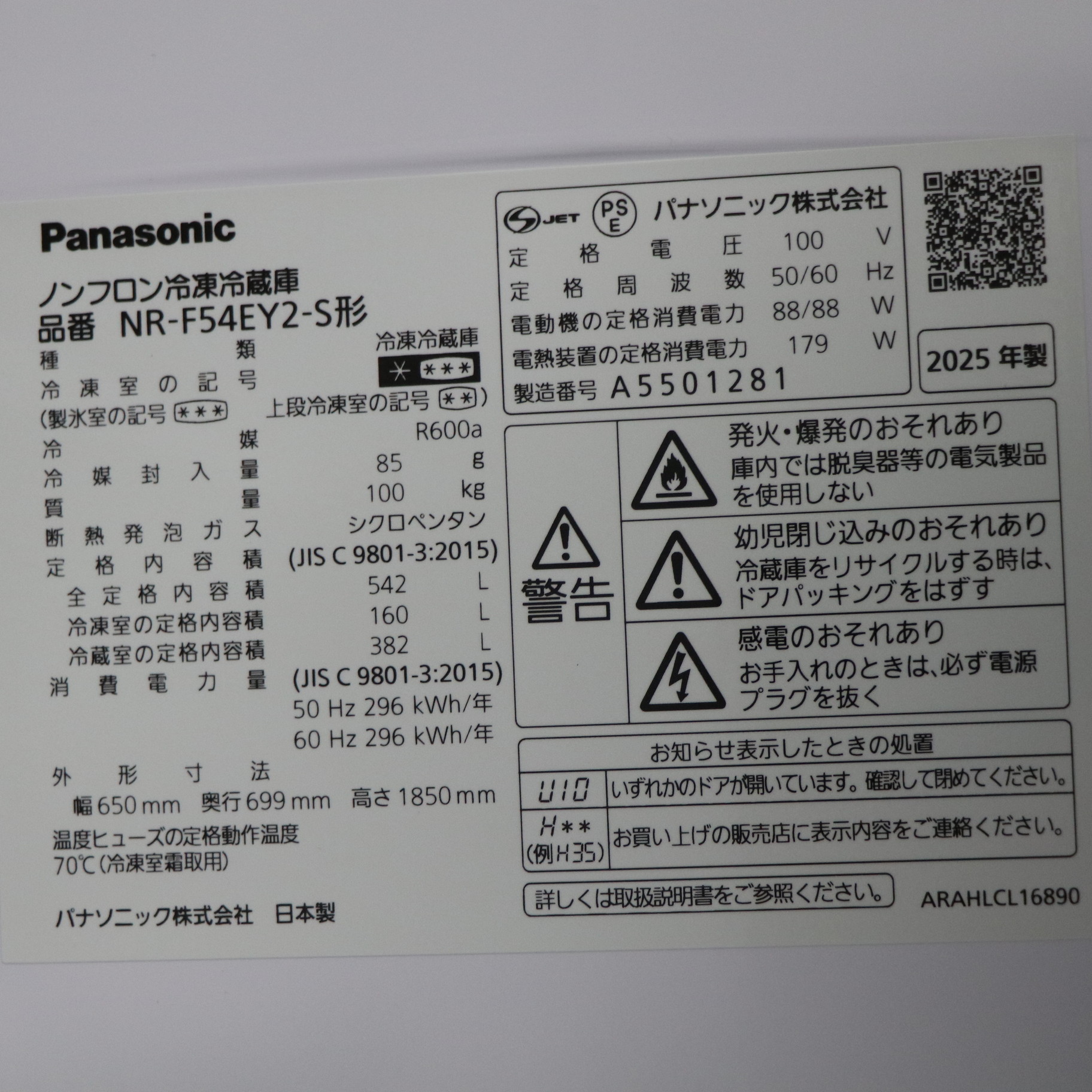 〔展示品〕 冷蔵庫 EYタイプ シルバー NR-F54EY2-S [幅65cm /542L /6ドア /観音開きタイプ /2025年]