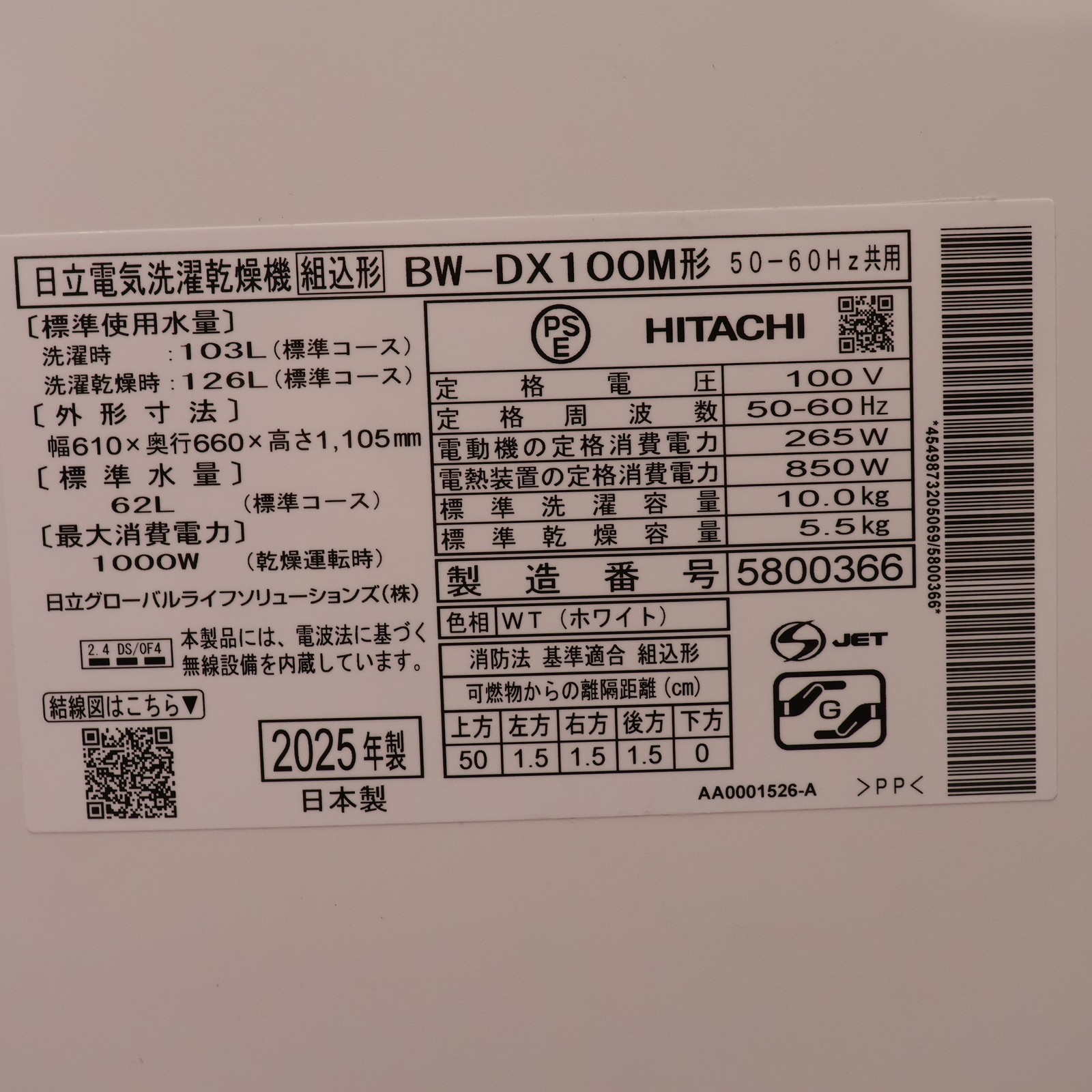 〔展示品〕 タテ型洗濯乾燥機 BW-DX100M-WT [洗濯10.0kg /乾燥5.5kg /ヒーター乾燥(水冷・除湿タイプ) /上開き]