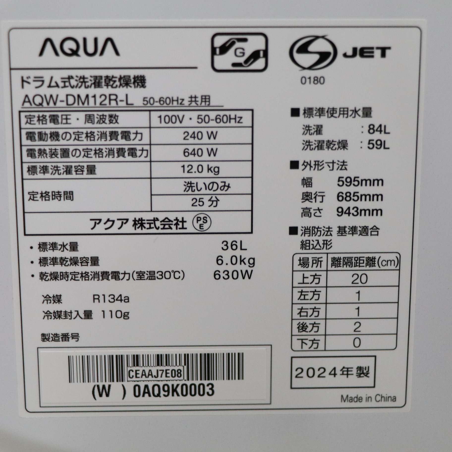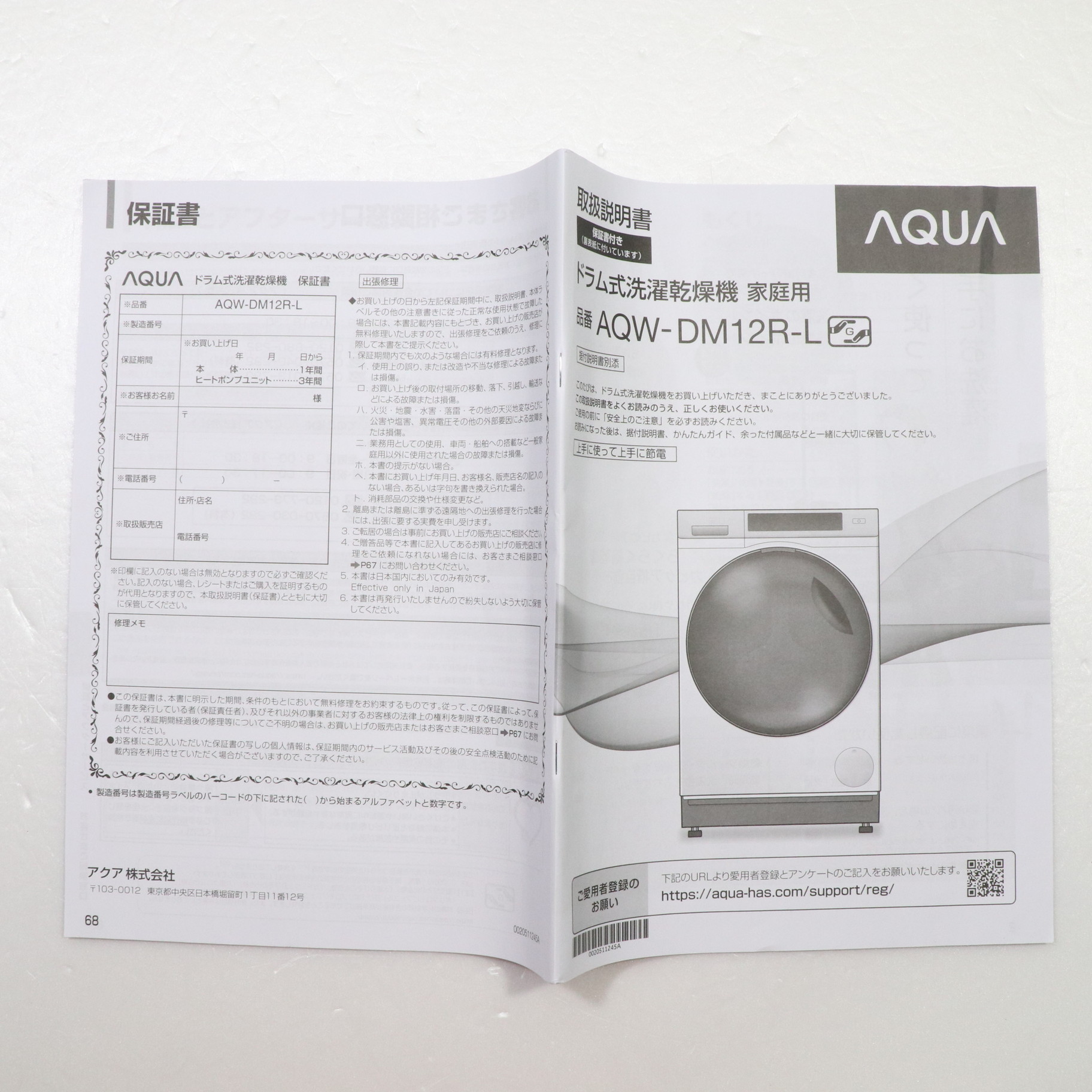 〔展示品〕 ドラム式洗濯乾燥機 AQUA ホワイト AQW-DM12R-L(W) [洗濯12.0kg /乾燥6.0kg /ヒートポンプ乾燥 /左開き]