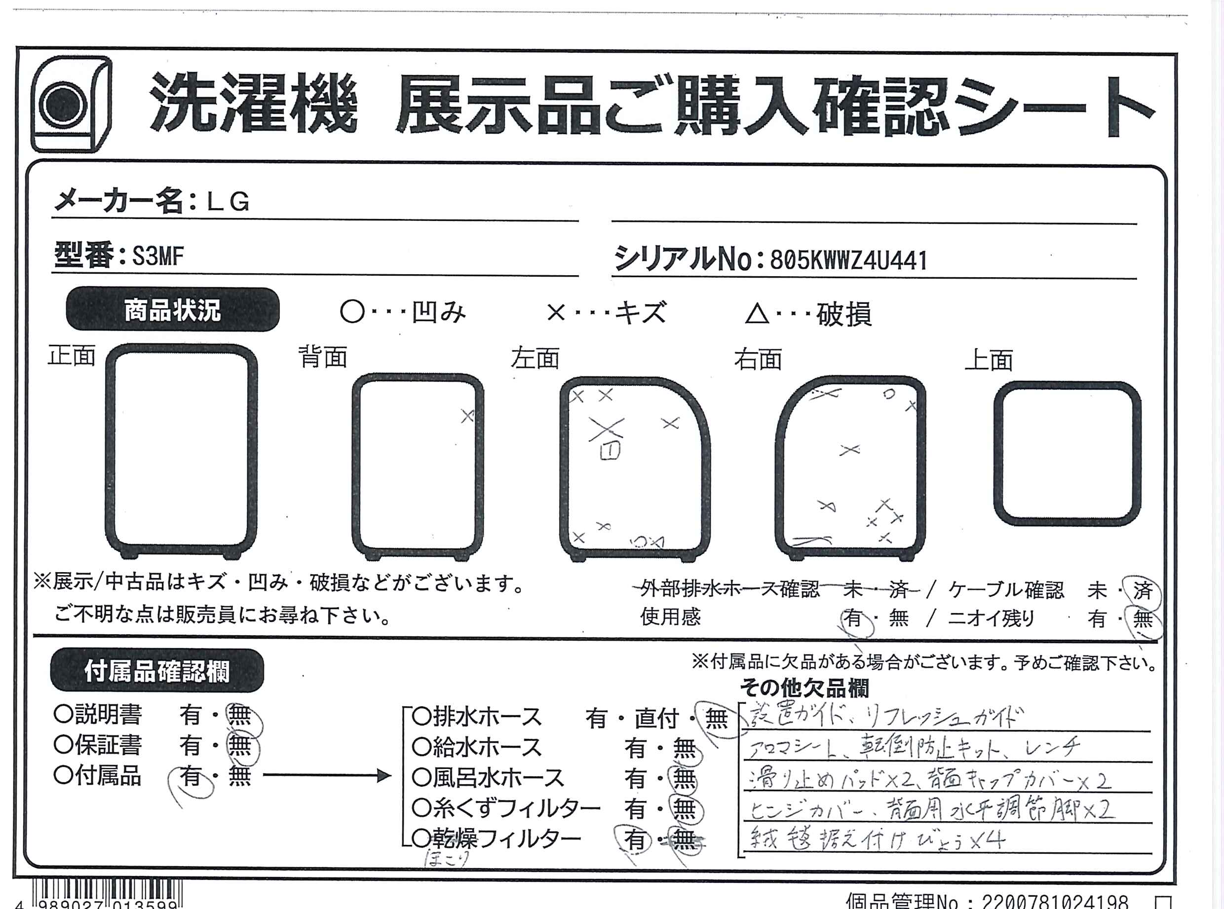 中古商品ランクについて 付属品・商品状態について 〔付属品〕棚、ハンガー×2、ズボンハンガー、しずくトレイ