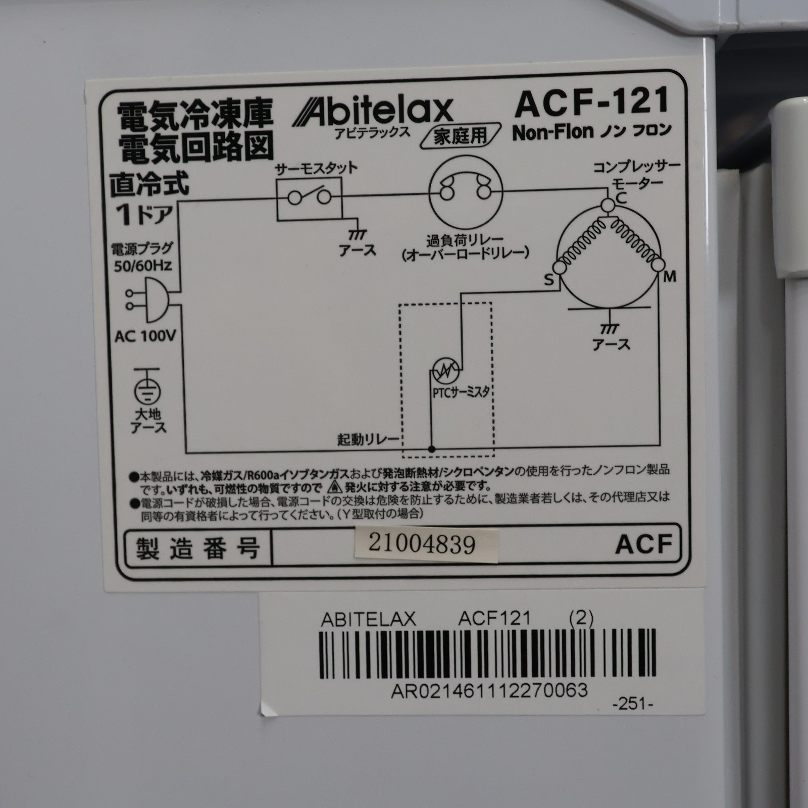 ![アビテラックス 冷凍庫 ACF-121 [幅50.8cm /100L /1ドア /右開きタイプ]](https://image.sofmap.com/images/product/large/4538991006689.jpg)