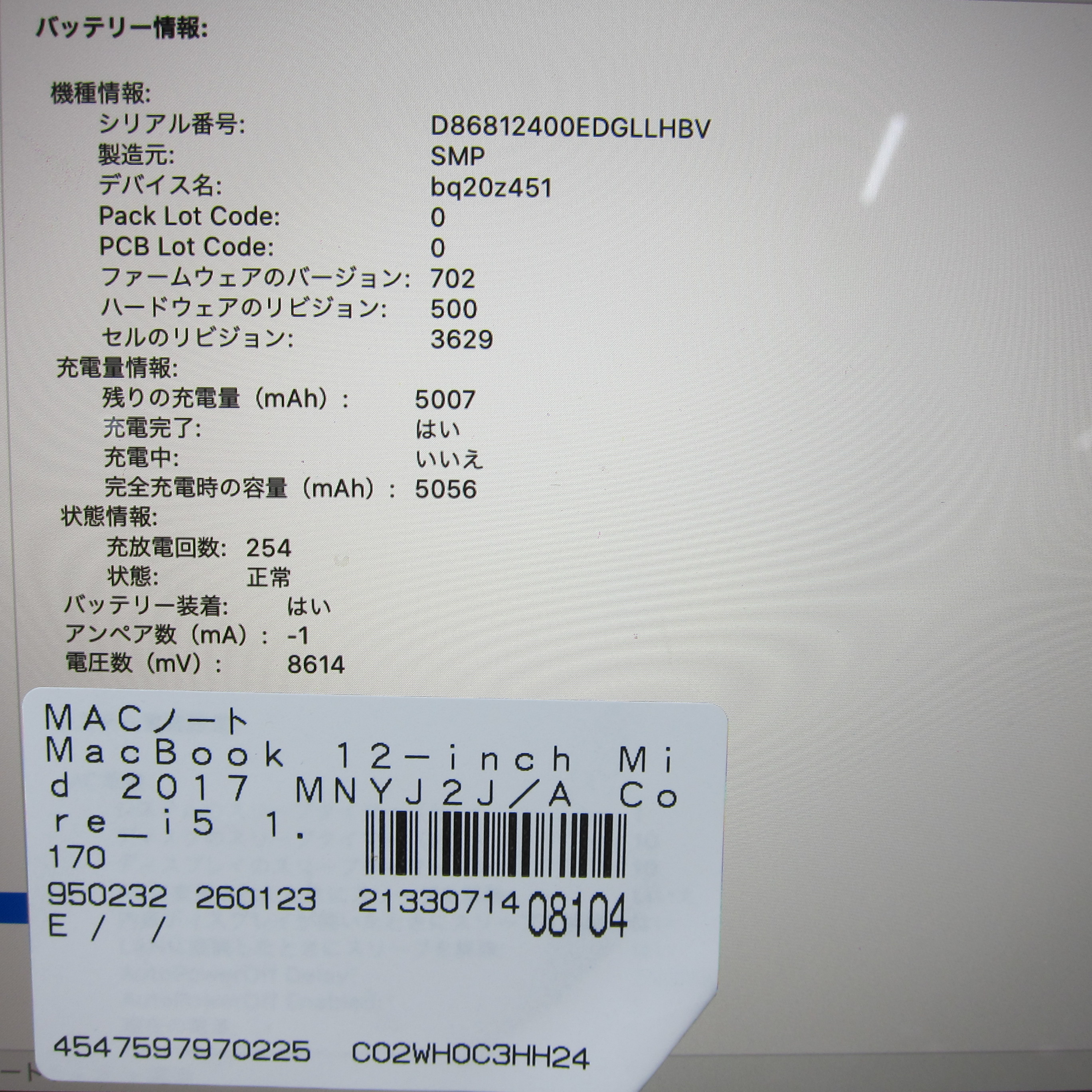 〔中古品〕 MacBook 12-inch Mid-2017 MNYJ2J/A Core_i5 1.3GHz 8GB SSD512GB シルバー 〔10.15 Catalina〕 [グラフィック:Intel HD Graphics 615(CPU内蔵)/JISキーボード]