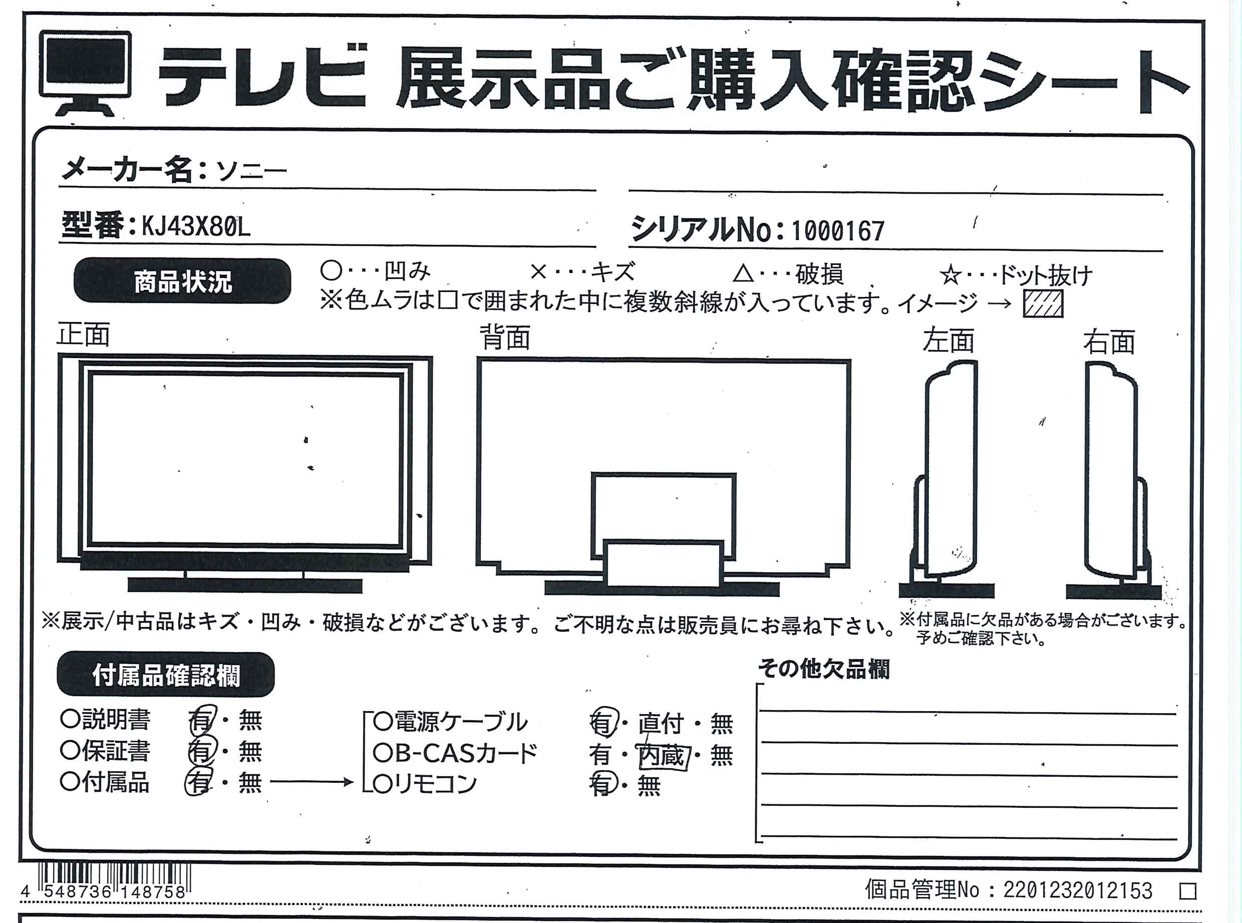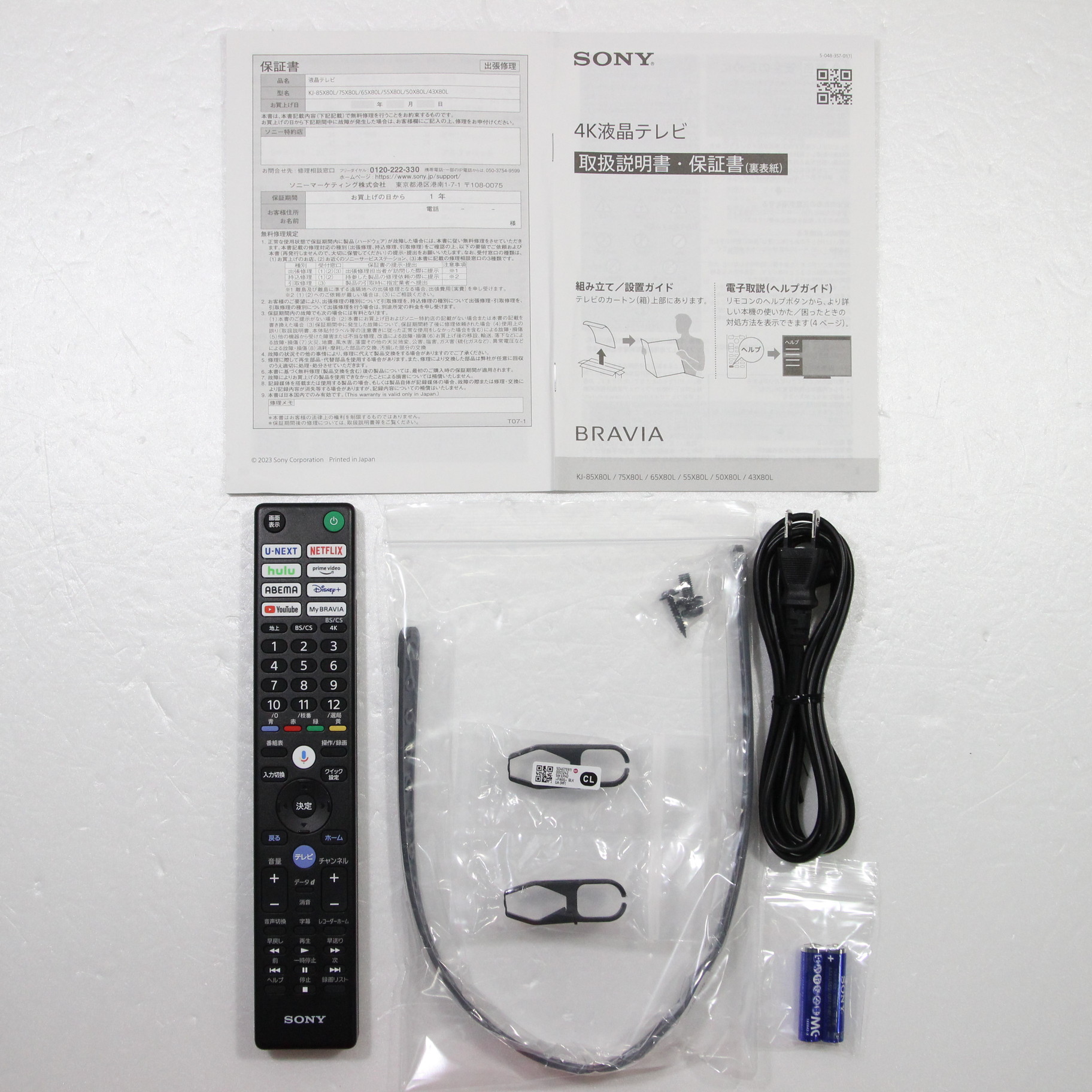 中古商品ランクについて 付属品・商品状態について 〔付属品〕説明書、組み立て/設置ガイド、Google TV セットアップガイド、製品登録のおすすめ、リモコン、リモコン用単四型乾電池×2、スペーサー(VS)×4、ケーブルクリップ(CL)×2、電源ケーブル、スタンド(SB1)、スタンド(SB2)、転倒防止用バンド一式(FB)
