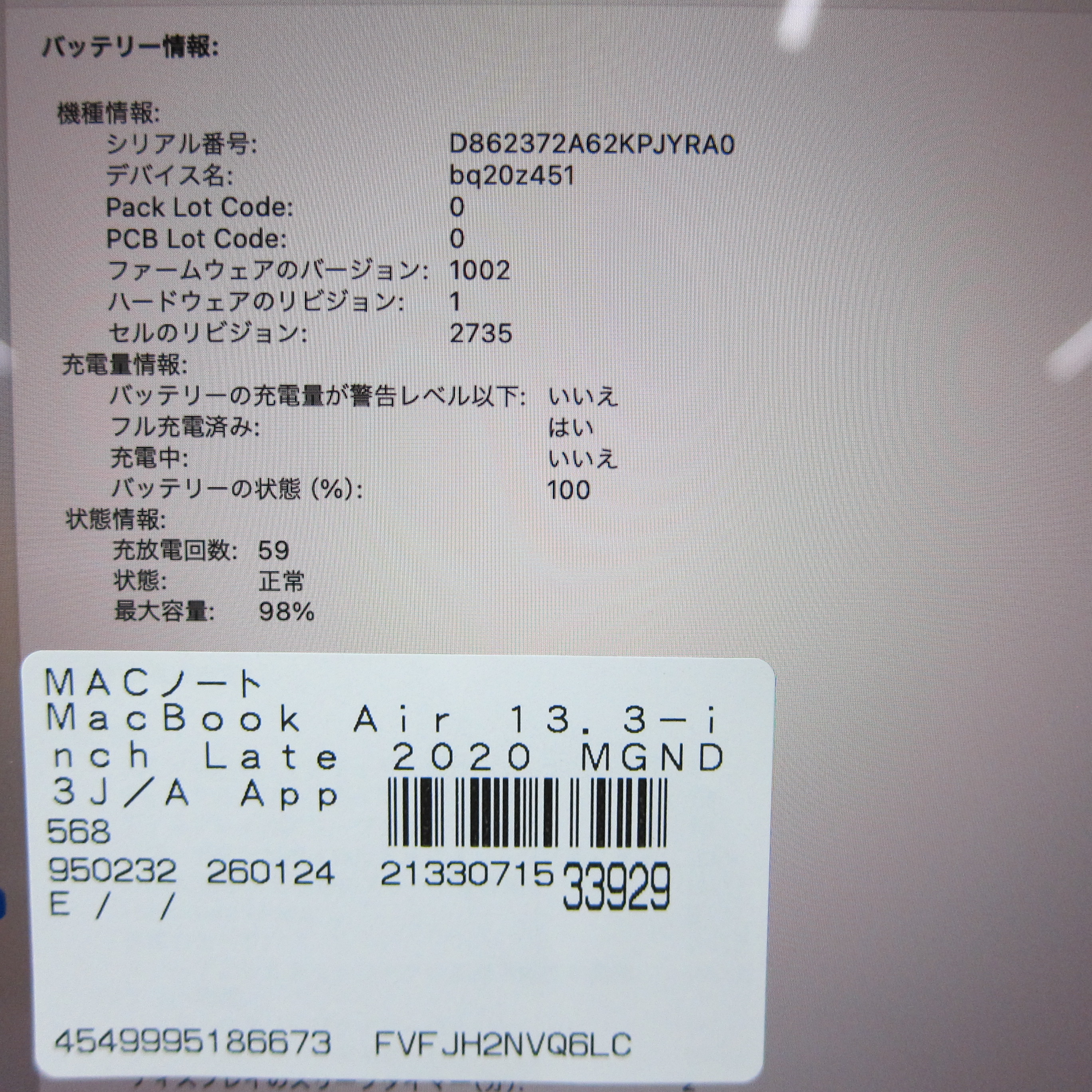 〔中古品〕 MacBook Air 13.3-inch Late-2020 MGND3J/A Apple M1 8コアCPU_7コアGPU 8GB SSD256GB ゴールド 〔14.7 Sonoma〕 [グラフィック:オンボード/JISキーボード]