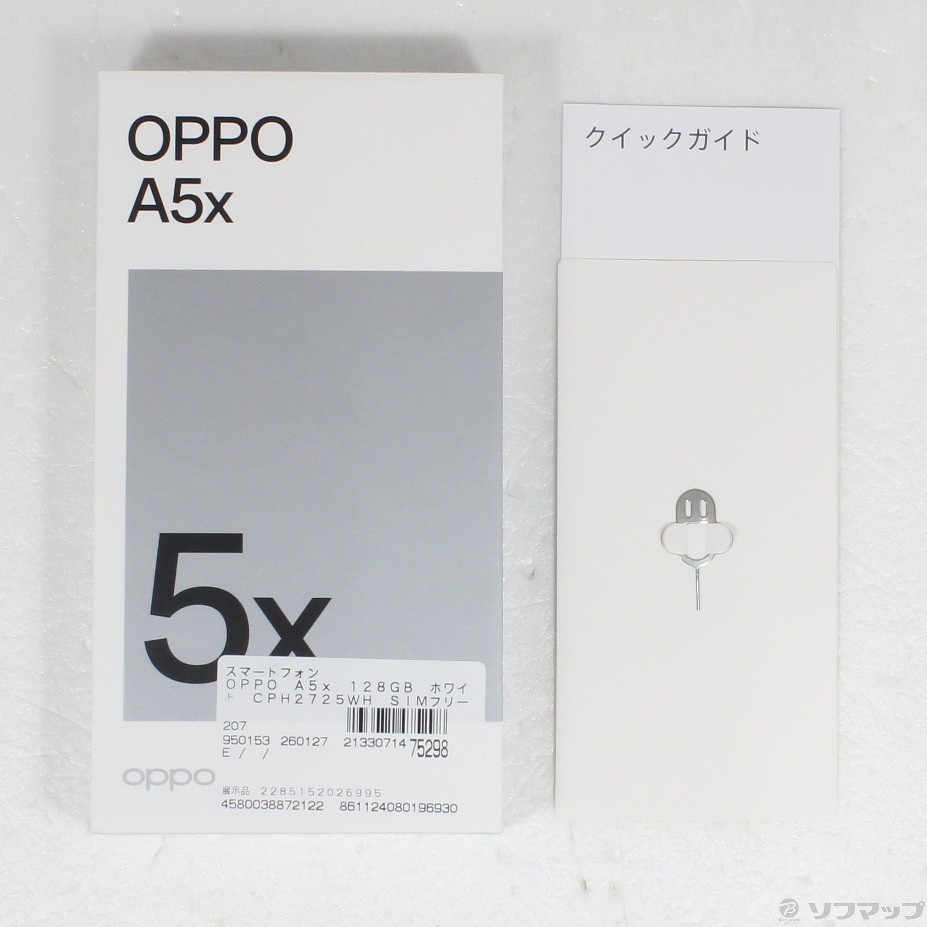 〔展示品〕 OPPO A5x 128GB ホワイト CPH2725WH SIMフリー [6.7インチ液晶/Snapdragon 6s 4G Gen 1/電池容量:6000mAh]