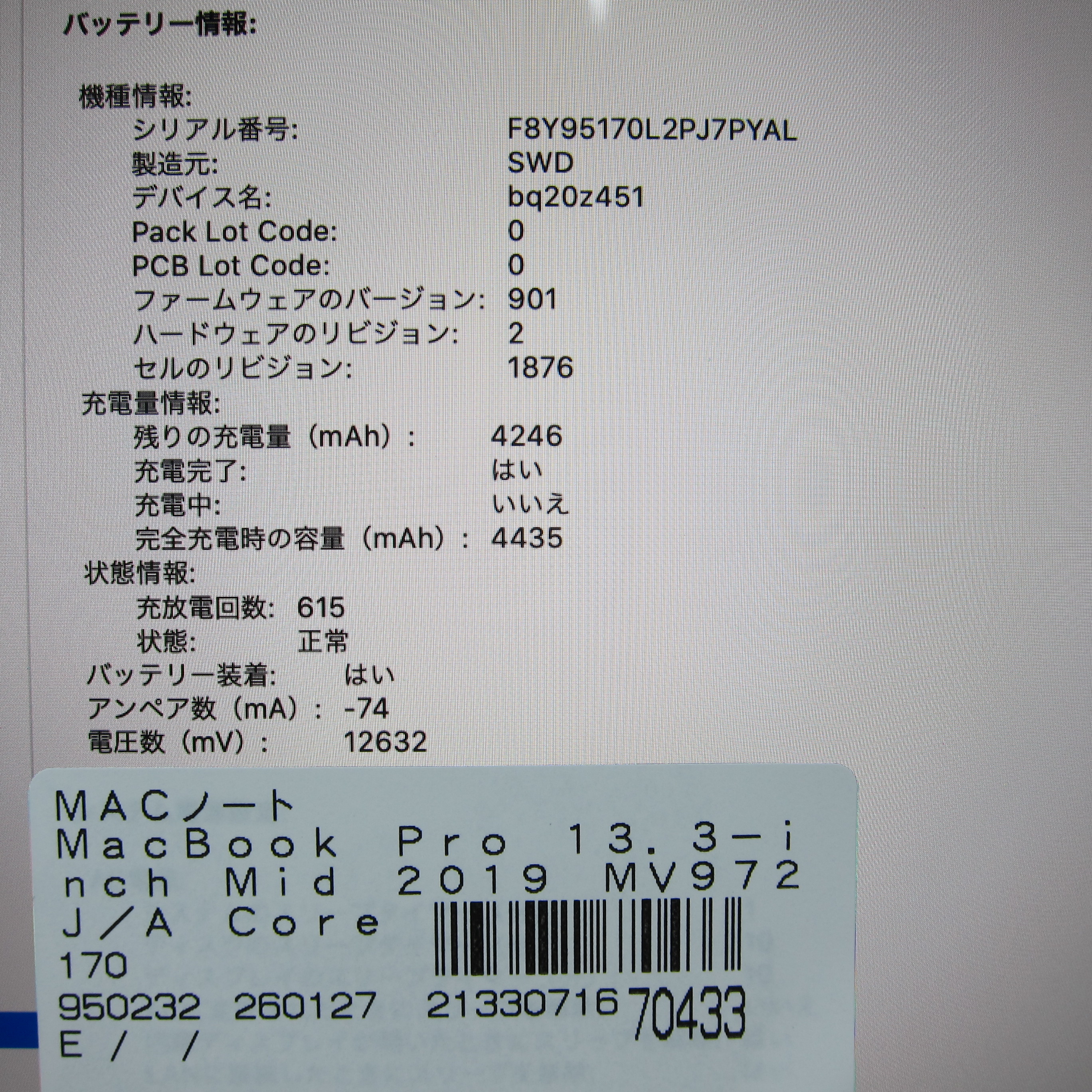 〔中古品〕 MacBook Pro 13.3-inch Mid-2019 MV972J/A Core_i7 2.8GHz 16GB SSD512GB スペースグレイ 〔10.15 Catalina〕 [グラフィック:Intel Iris Plus Graphics 655(CPU内蔵)/JISキーボード]