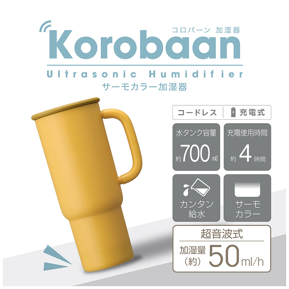 〔展示品〕 超音波加湿器 Korobaan(コロバーン) イエロー kWA-055BYL [超音波式]