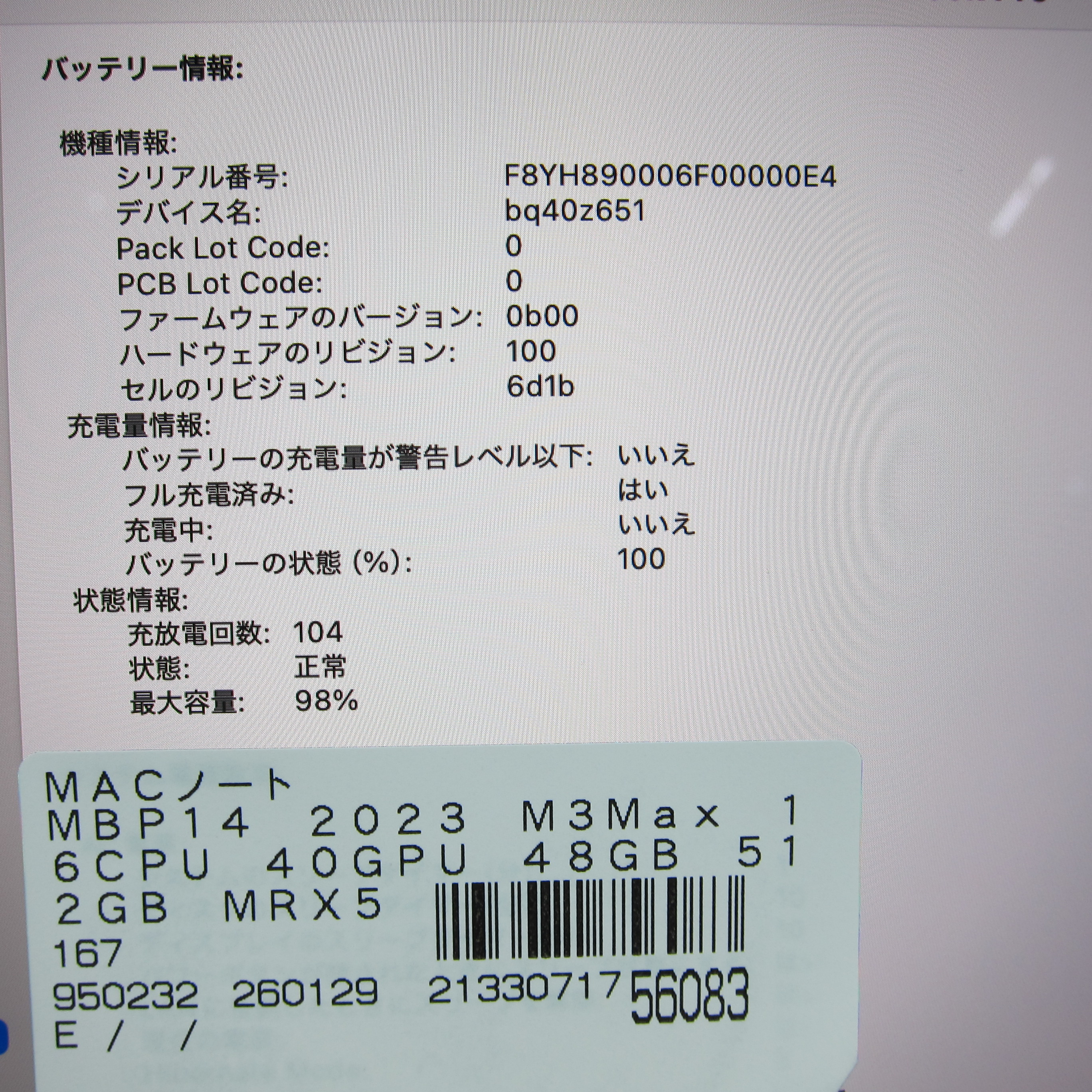 〔中古品〕 MacBook Pro 14.2-inch Late-2023 MRX53J/A Apple M3 Max 16コアCPU_40コアGPU 128GB SSD2TB スペースブラック 〔15.3 Sequoia〕 [グラフィック:オンボード/JISキーボード]