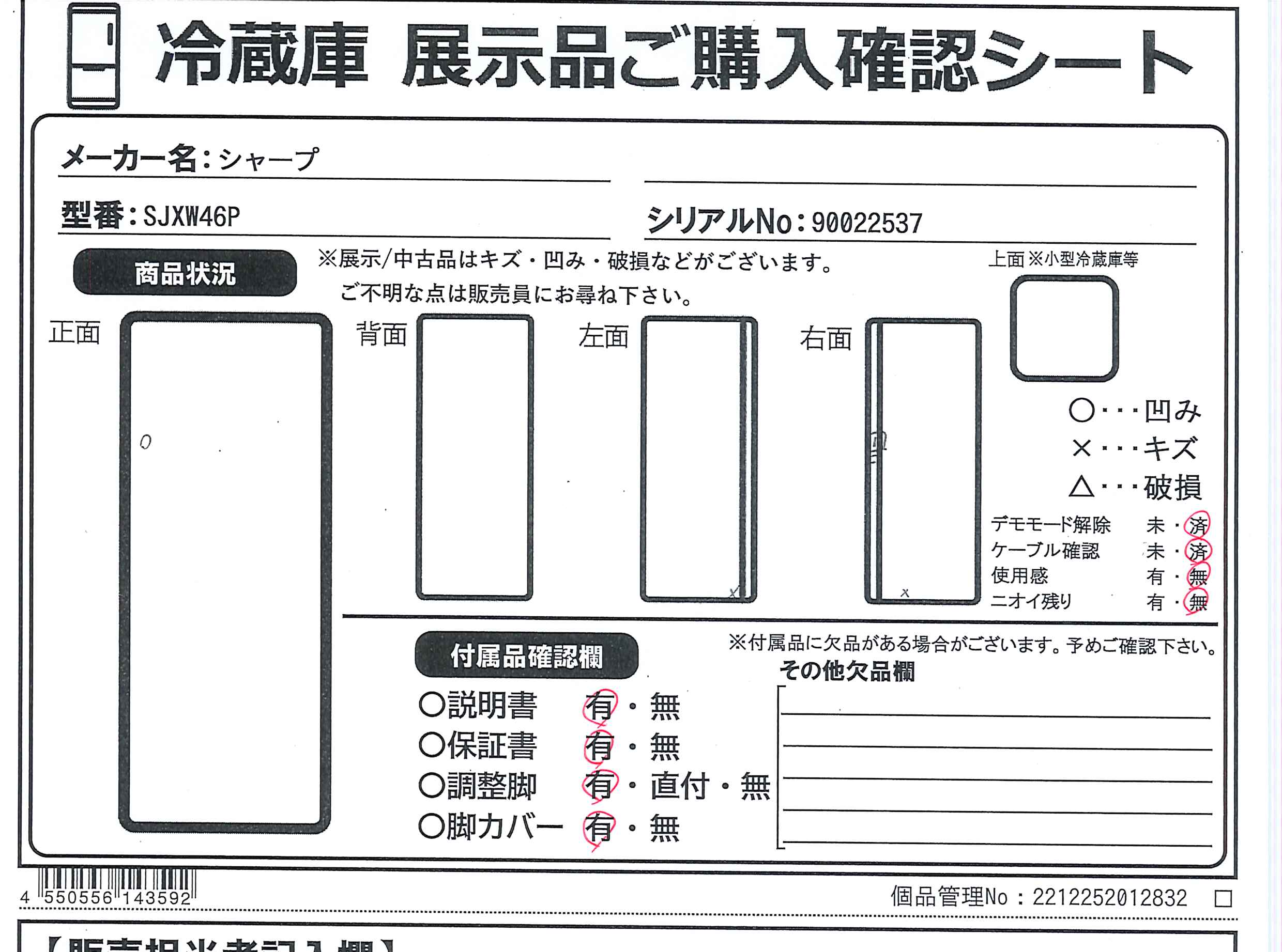 中古商品ランクについて 付属品・商品状態について 〔付属品〕説明書、ベースカバー、調節脚X2、たまご仕切り、給水タンク、シャベル、フレキシブルトレー