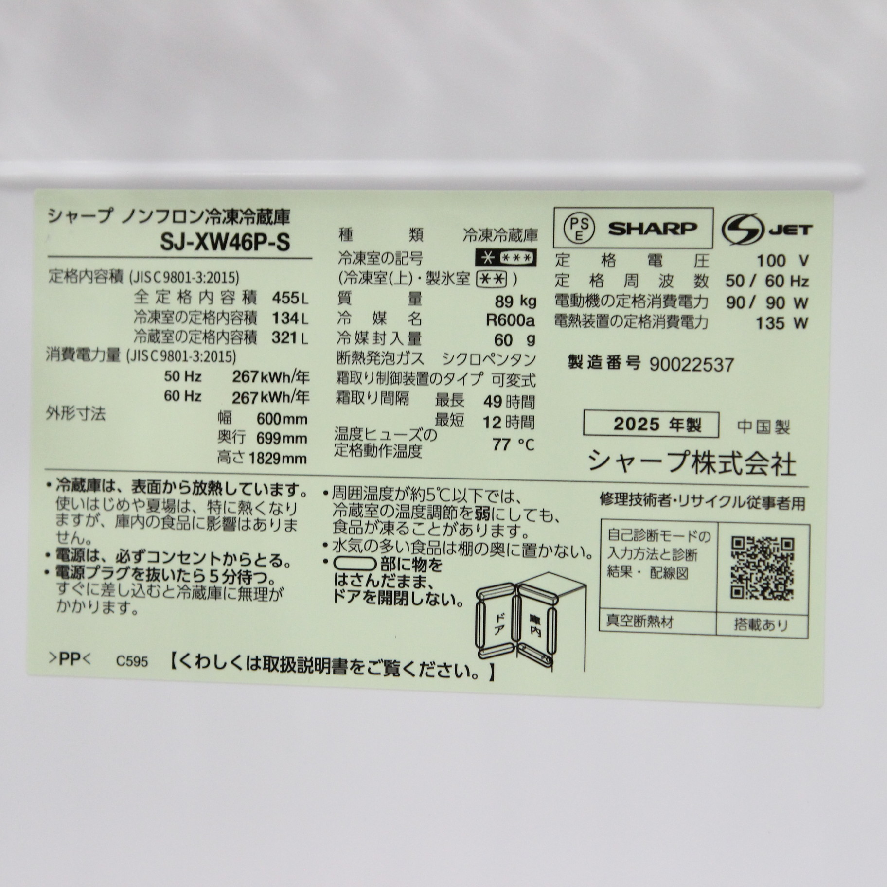〔展示品〕 両開き455L冷蔵庫 カームマットシルバー SJ-XW46P-S [幅60cm /455L /5ドア /左右開きタイプ]