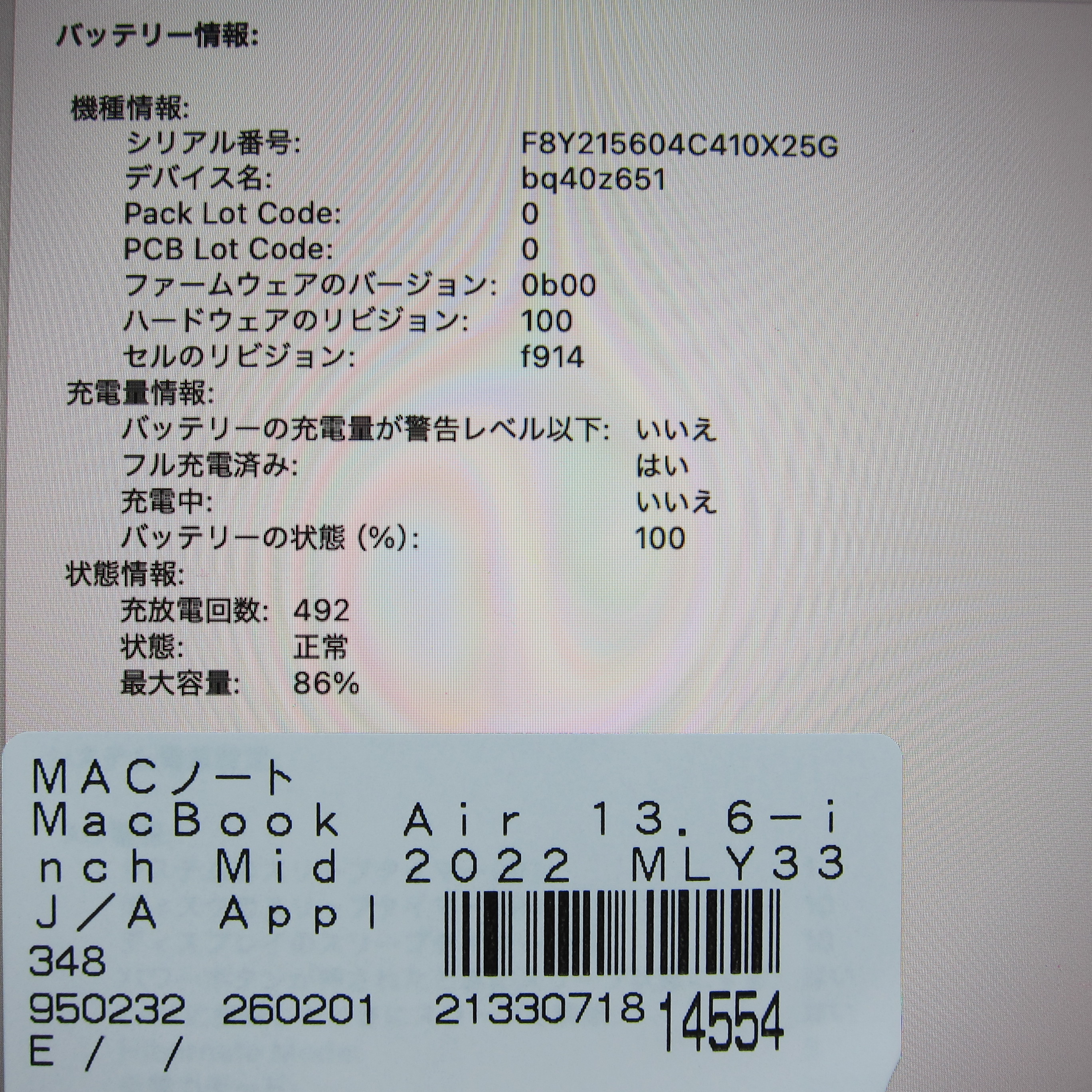 〔中古品〕 MacBook Air 13.6-inch Mid-2022 MLY33J/A Apple M2 8コアCPU_8コアGPU 8GB SSD256GB ミッドナイト 〔15.3 Sequoia〕 [グラフィック:オンボード/JISキーボード]