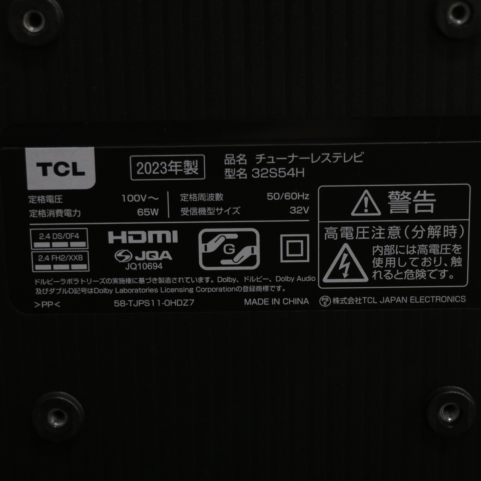 〔展示品〕 チューナーレステレビ S54Hシリーズ 32S54H [32V型 /Bluetooth対応 /フルハイビジョン /チューナーレス /YouTube対応]