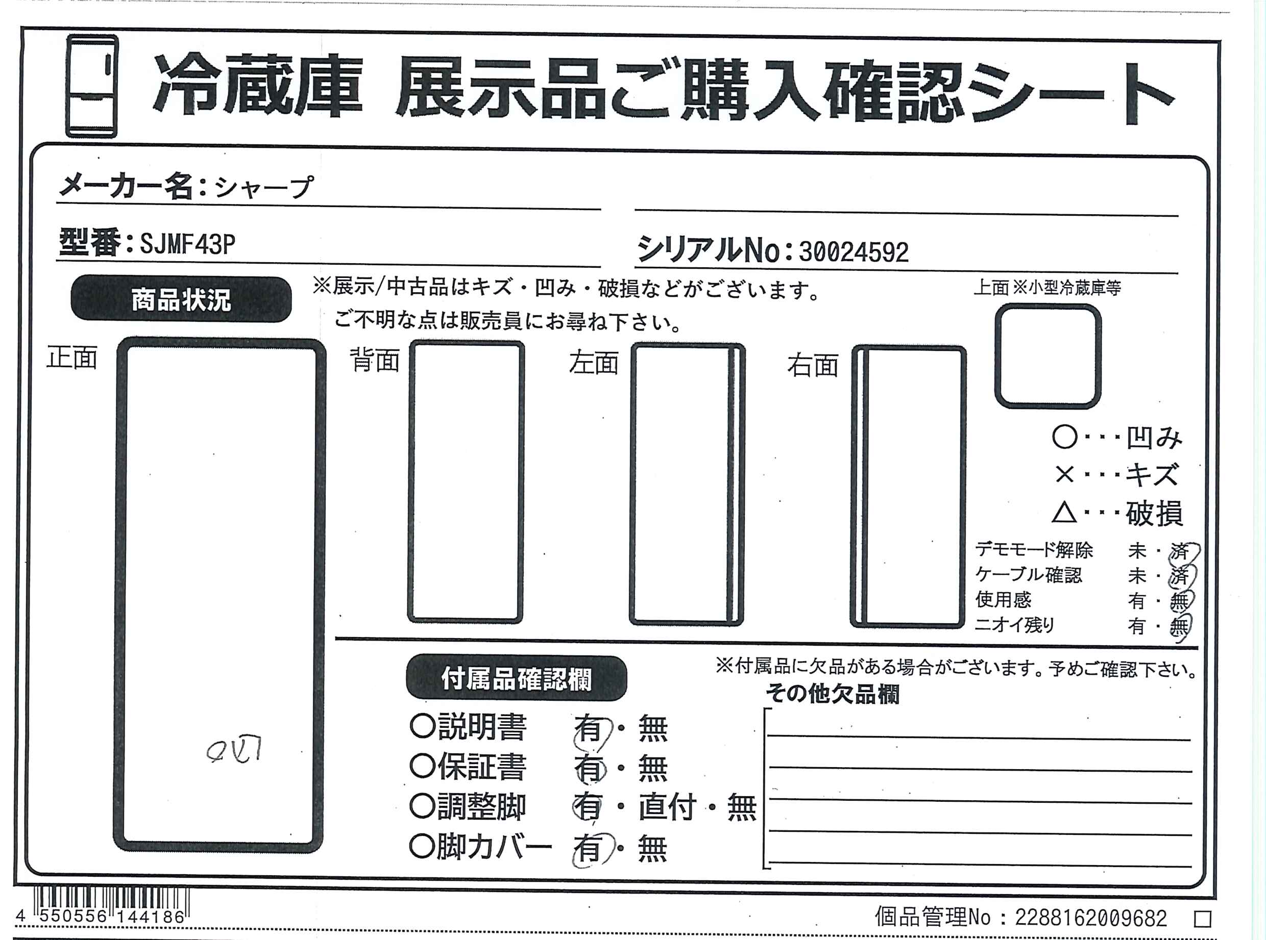 中古商品ランクについて 付属品・商品状態について 〔付属品〕説明書、調節脚X2、ベースカバー、たまご仕切り、フレキシブルポケット、シャベル、仕切り、フレキシブルトレー