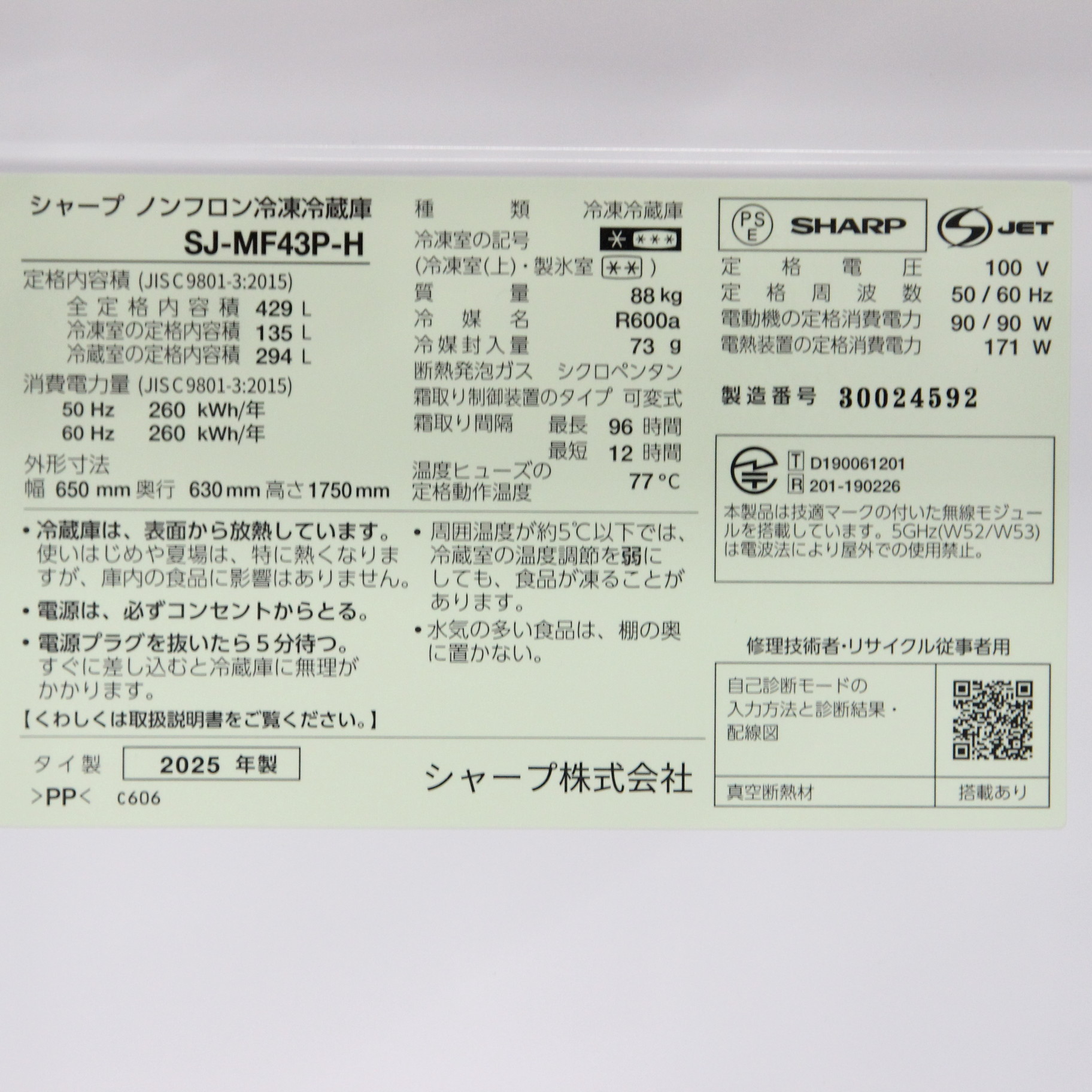 〔展示品〕 プラズマクラスター冷蔵庫 ダスクダークメタル SJ-MF43P-H [幅65cm /429L /6ドア /観音開きタイプ]