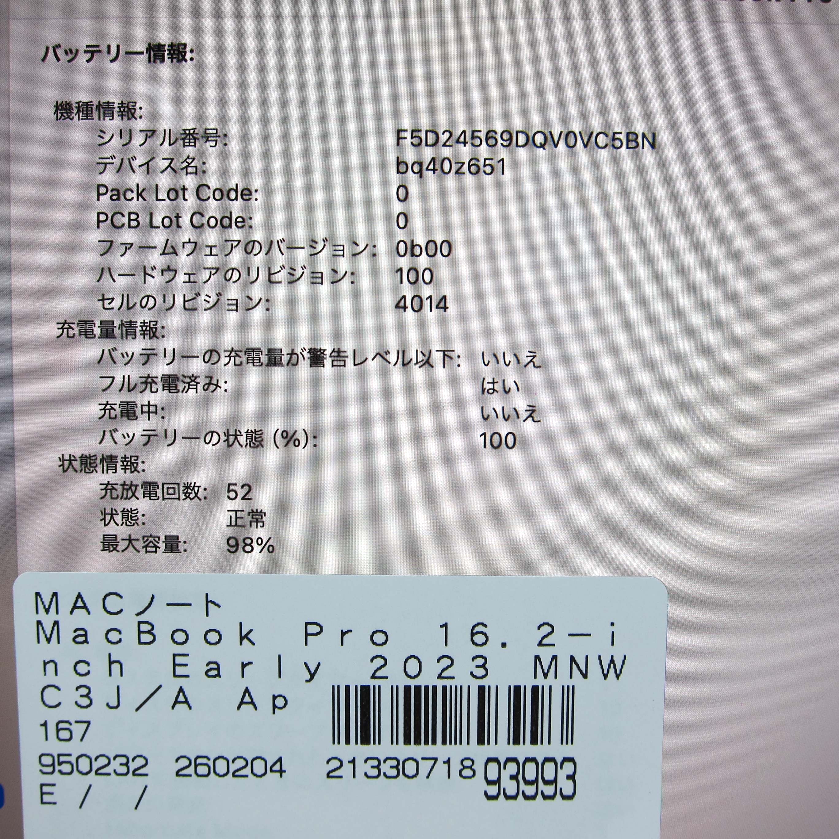 〔中古品〕 MacBook Pro 16.2-inch Early-2023 MNWC3J/A Apple M2 Pro 12コアCPU_19コアGPU 16GB SSD512GB シルバー 〔14.7 Sonoma〕 [グラフィック:オンボード/USキーボード]
