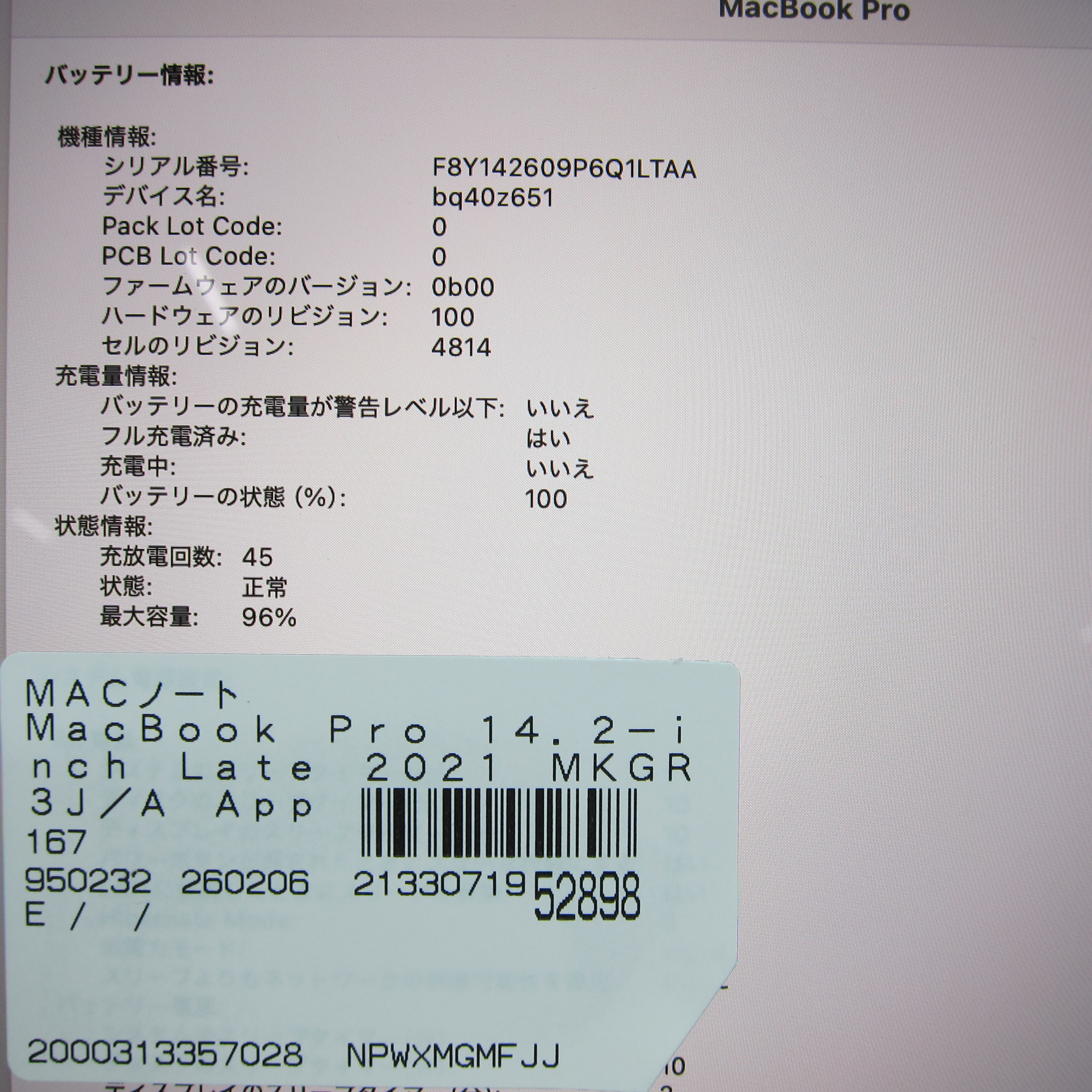 〔中古品〕 MacBook Pro 14.2-inch Late-2021 MKGR3J/A Apple M1 Pro 10コアCPU_16コアGPU 32GB SSD4TB シルバー 〔15.7 Sequoia〕 [グラフィック:オンボード/JISキーボード]