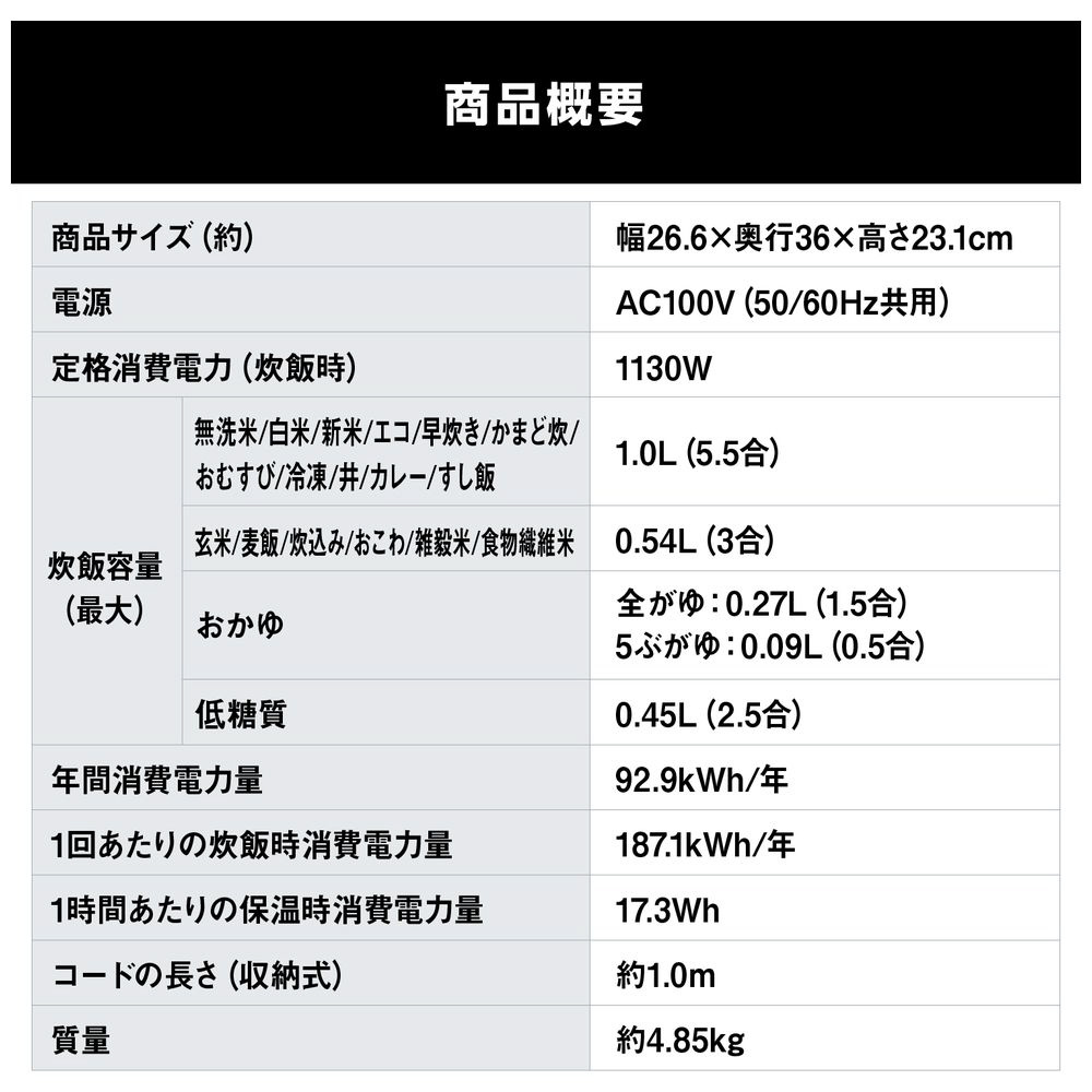 〔展示品〕 IHジャー炊飯器 技炎かまど炊き 極厚銅釜 ブラック KRC-ICA50 [5.5合 /IH]
