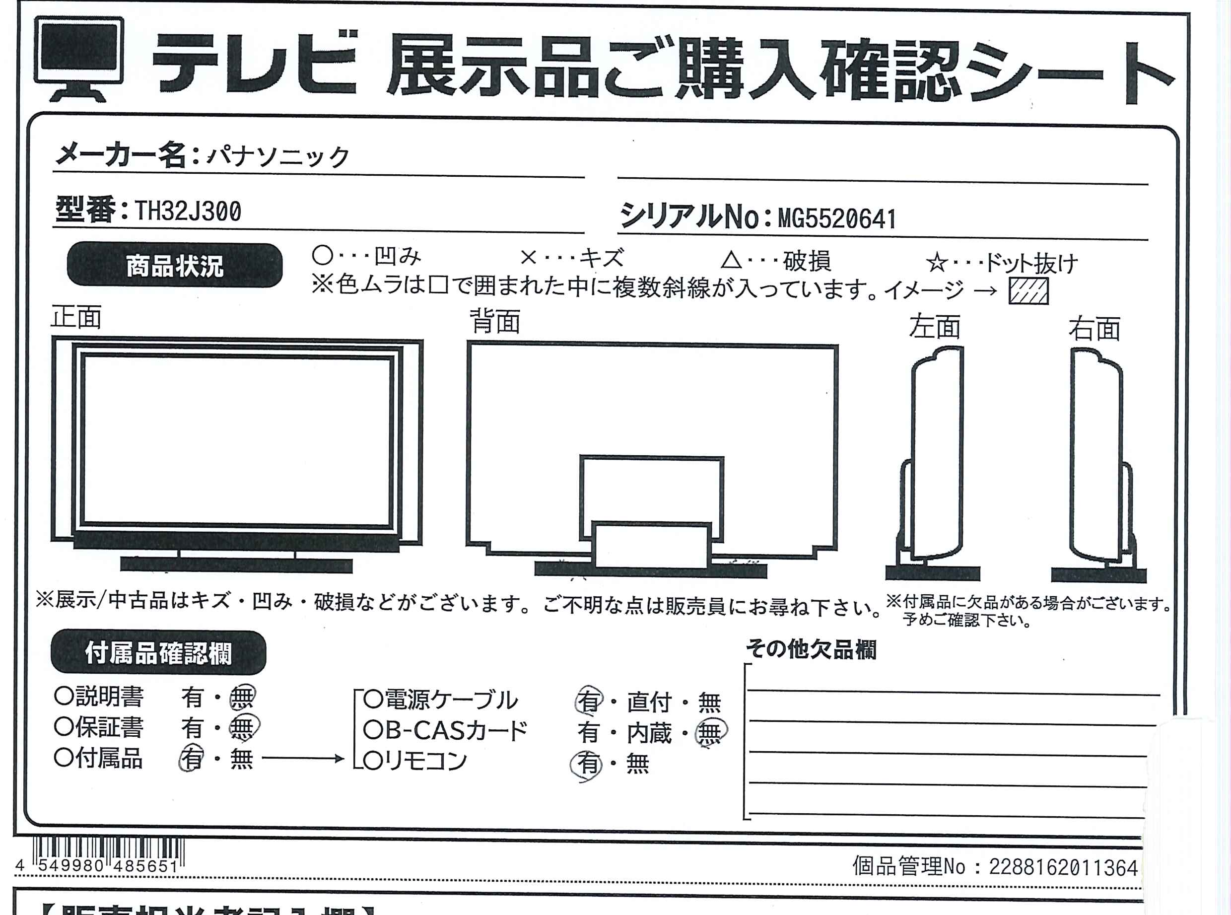 中古商品ランクについて 付属品・商品状態について 〔付属品〕リモコン品番:N2QAYB001229、単3形乾電池×2、電源コード、スタンド本体、スタンドブラケット、ブラケット固定用ねじ(黒)×3、本体固定用ねじ×4 黒 M4×15、転倒・落下防止ベルト、転倒・落下防止ネジ 黒、転倒・落下防止木ネジ シルバー