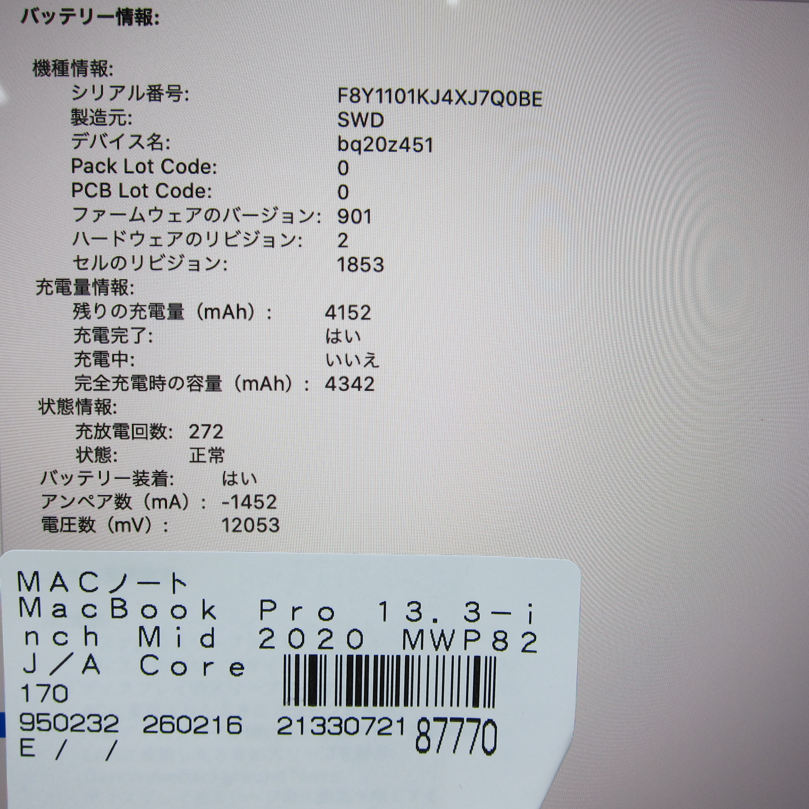 〔中古品(難あり)〕 MacBook Pro 13.3-inch Mid-2020 MWP82J/A Core_i5 2.0GHz 16GB SSD1TB シルバー 〔10.15 Catalina〕 [グラフィック:Intel Iris Plus Graphics/JISキーボード]