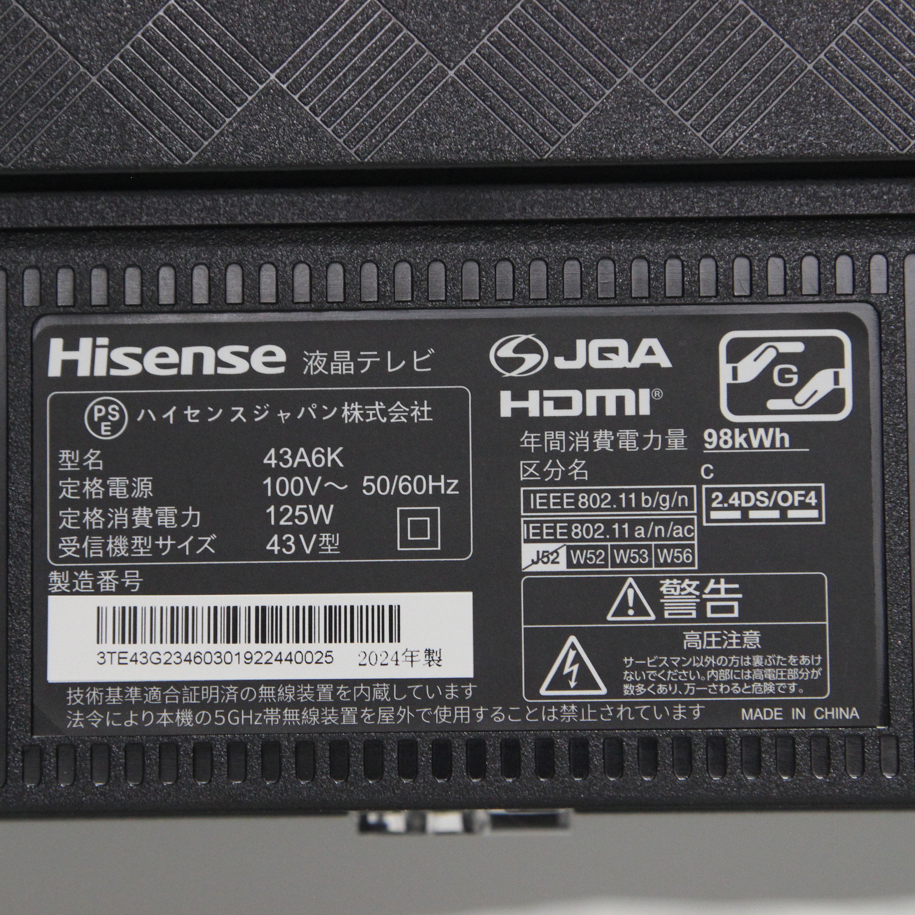 〔展示品〕 液晶テレビ 43A6K [43V型 /Bluetooth対応 /4K対応 /BS・CS 4Kチューナー内蔵 /YouTube対応]