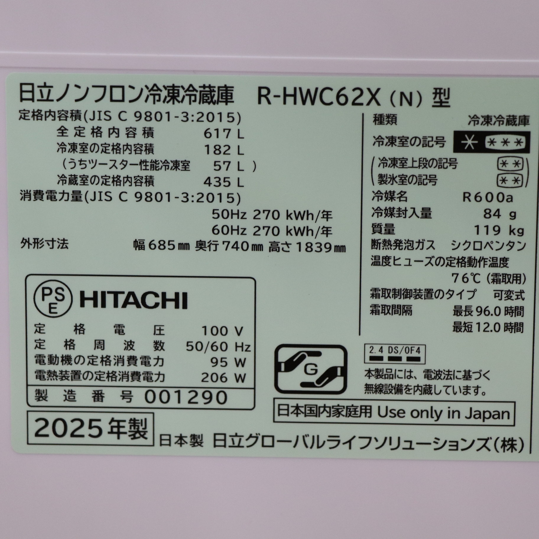 〔展示品〕 冷蔵庫 HWCタイプ ライトゴールド R-HWC62X-N [幅68.5cm /617L /6ドア /観音開きタイプ /2025年]