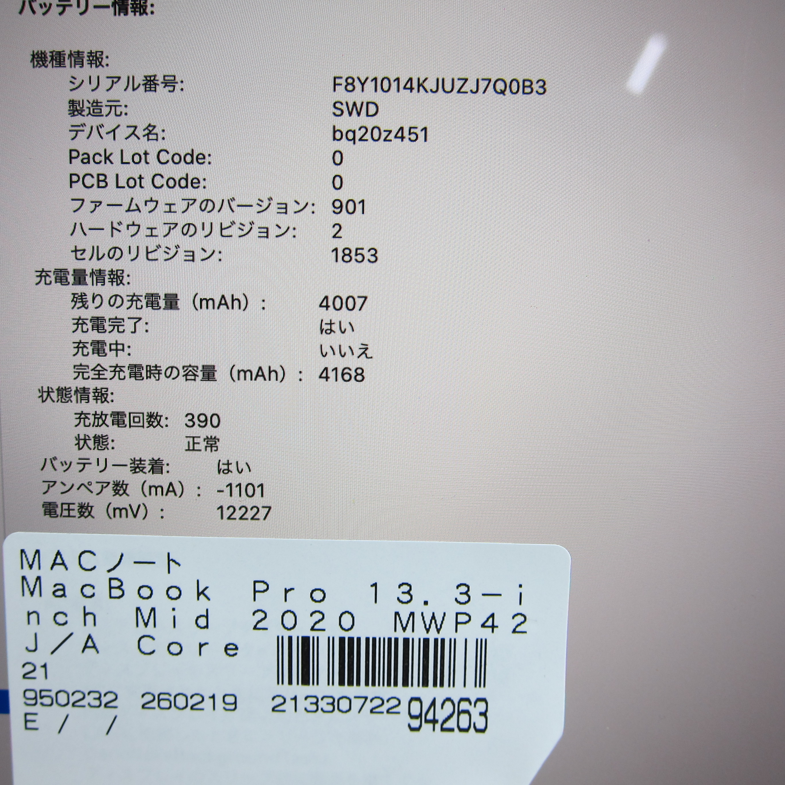 〔中古品〕 MacBook Pro 13.3-inch Mid-2020 MWP42J/A Core_i7 2.3GHz 16GB SSD512GB スペースグレイ 〔10.15 Catalina〕 [グラフィック:Intel Iris Plus Graphics/JISキーボード]