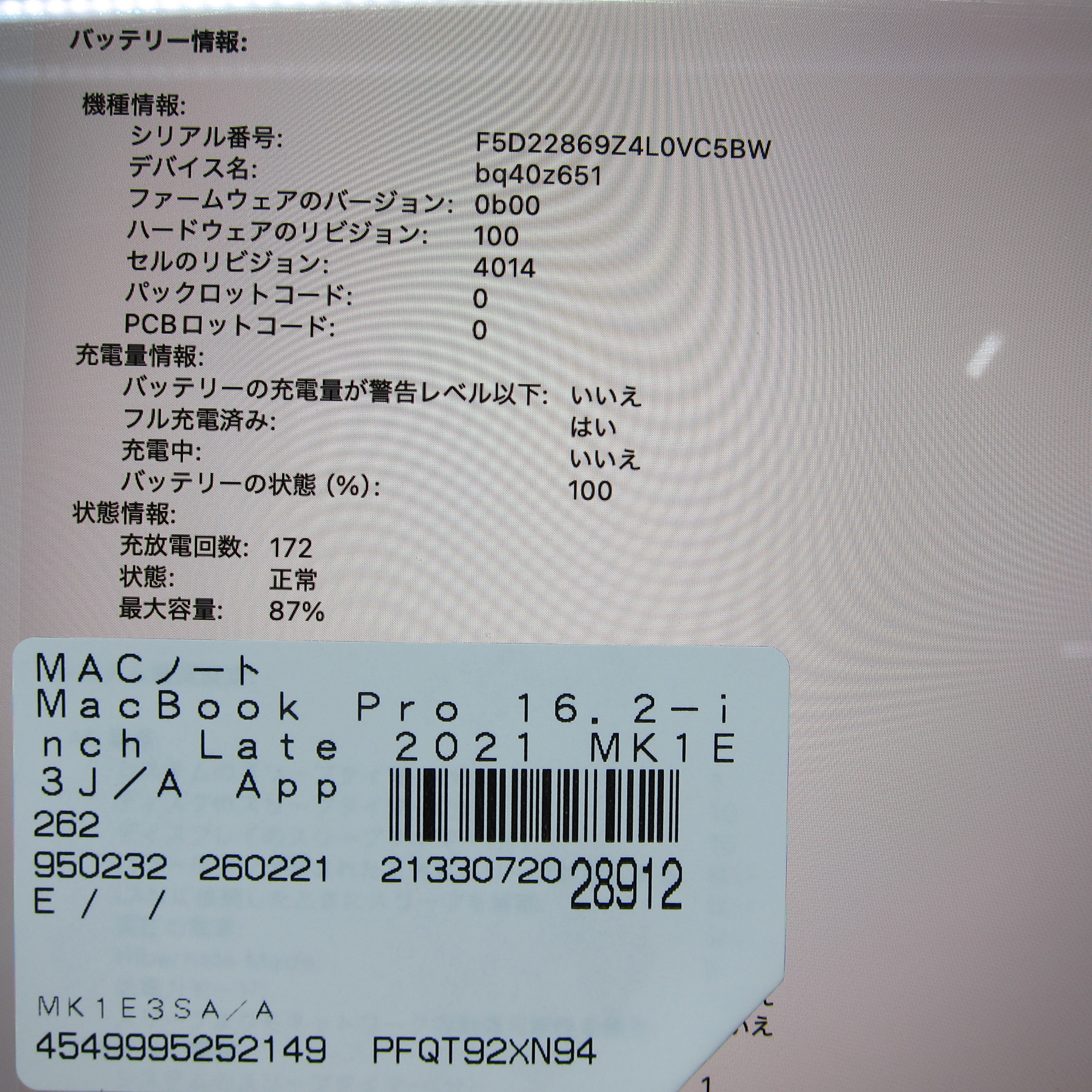 〔中古品〕 MacBook Pro 16.2-inch Late-2021 MK1E3J/A Apple M1 Pro 10コアCPU_16コアGPU 16GB SSD512GB シルバー 〔26.1 Tahoe〕 [グラフィック:オンボード/USキーボード]
