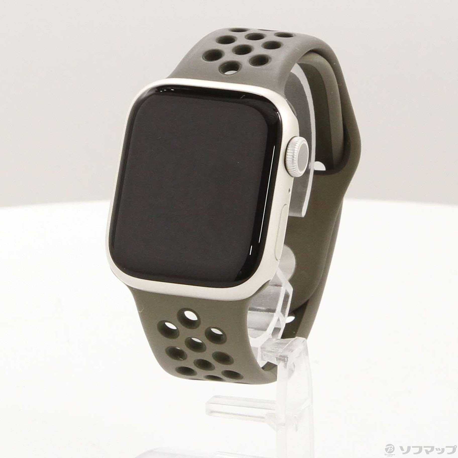 〔中古品(難あり)〕 Apple Watch Series 7 Nike GPS 41mm スターライトアルミニウムケース オリーブグレー/カーゴカーキNikeスポーツバンド