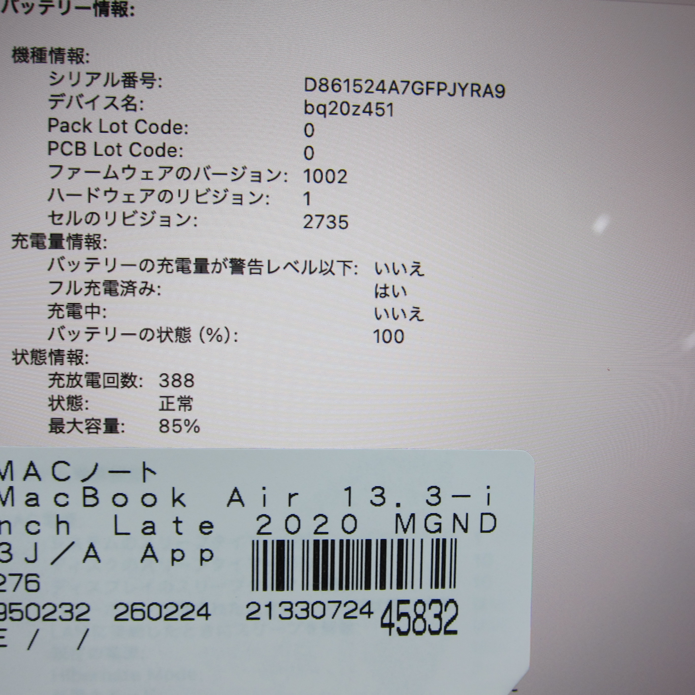 〔中古品〕 MacBook Air 13.3-inch Late-2020 MGND3J/A Apple M1 8コアCPU_7コアGPU 8GB SSD256GB ゴールド 〔15.3 Sequoia〕 [グラフィック:オンボード/JISキーボード]