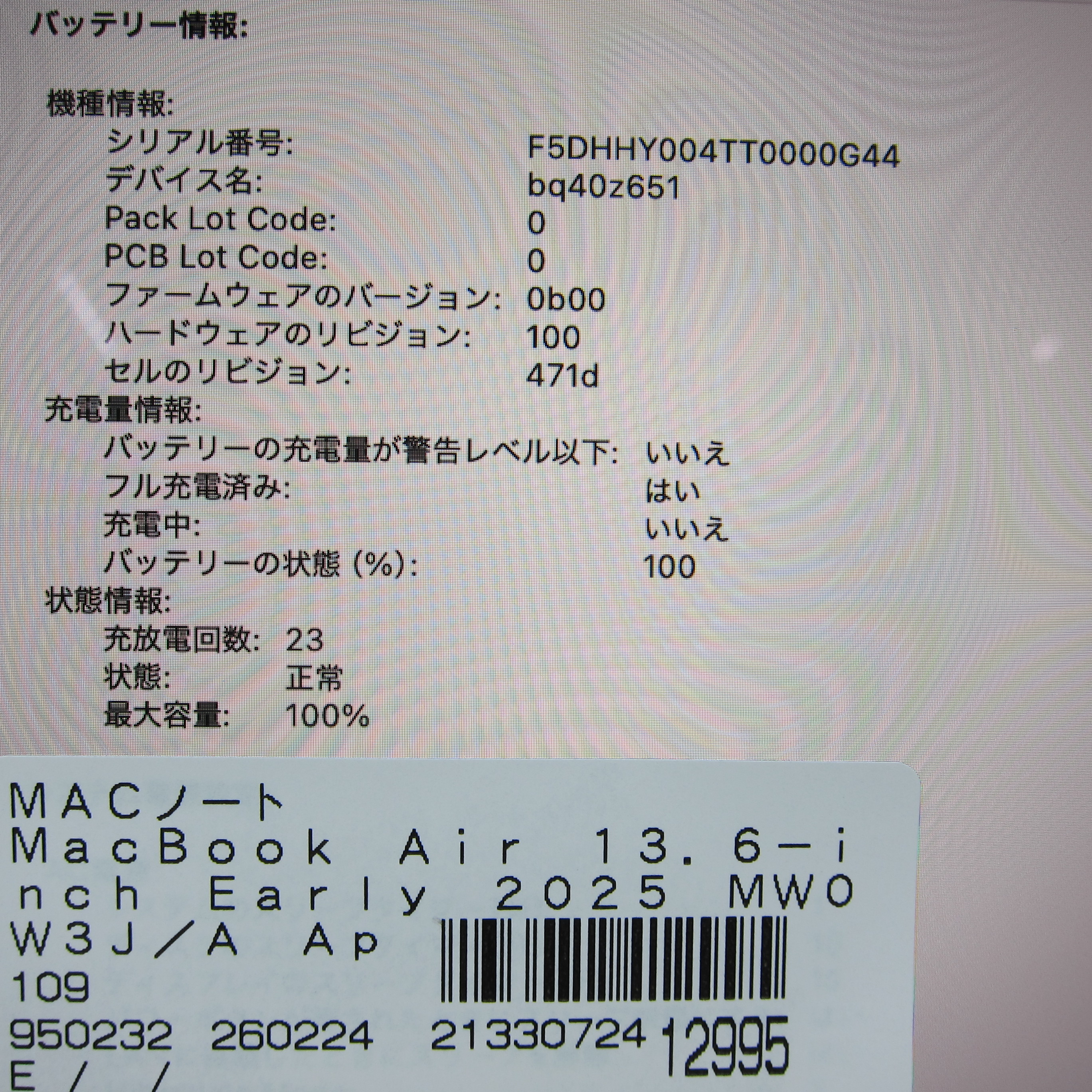〔中古品〕 MacBook Air 13.6-inch Early-2025 MW0W3J/A Apple M4 10コアCPU_8コアGPU 16GB SSD256GB シルバー 〔15.7 Sequoia〕 [グラフィック:オンボード/JISキーボード]