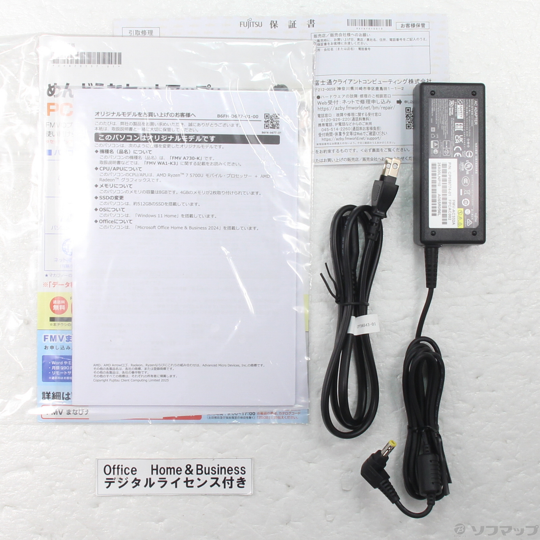 〔展示品〕 FMV Note A A730-K FMVA730KBA ブライトブラック [AMD-Ryzen-7-5700U (1.8GHz)/8GB/SSD512GB/15.6インチワイド/Windows11 Home]