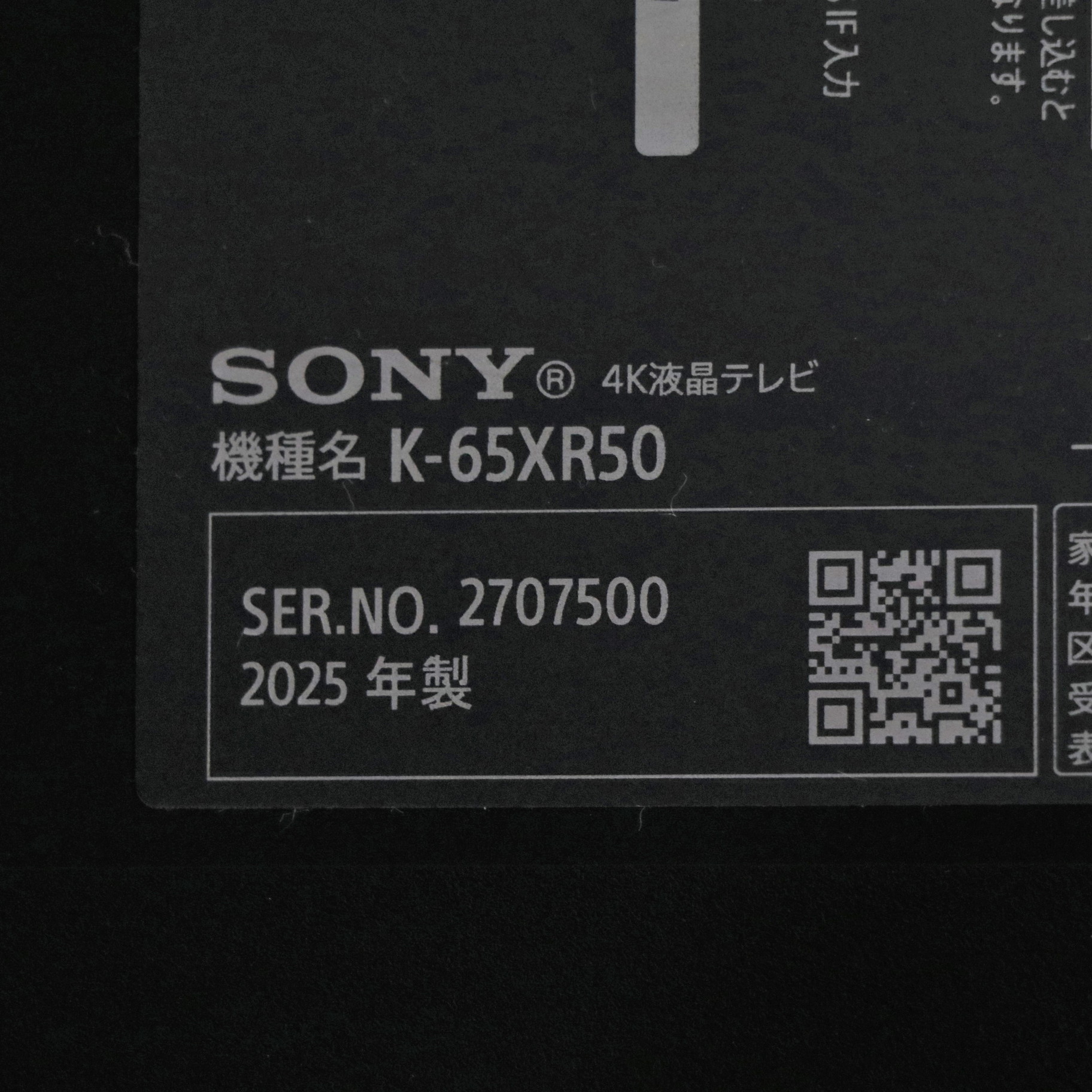 〔展示品〕 液晶テレビ BRAVIA(ブラビア) K-65XR50 [65V型 /Bluetooth対応 /4K対応 /BS・CS 4Kチューナー内蔵 /YouTube対応]