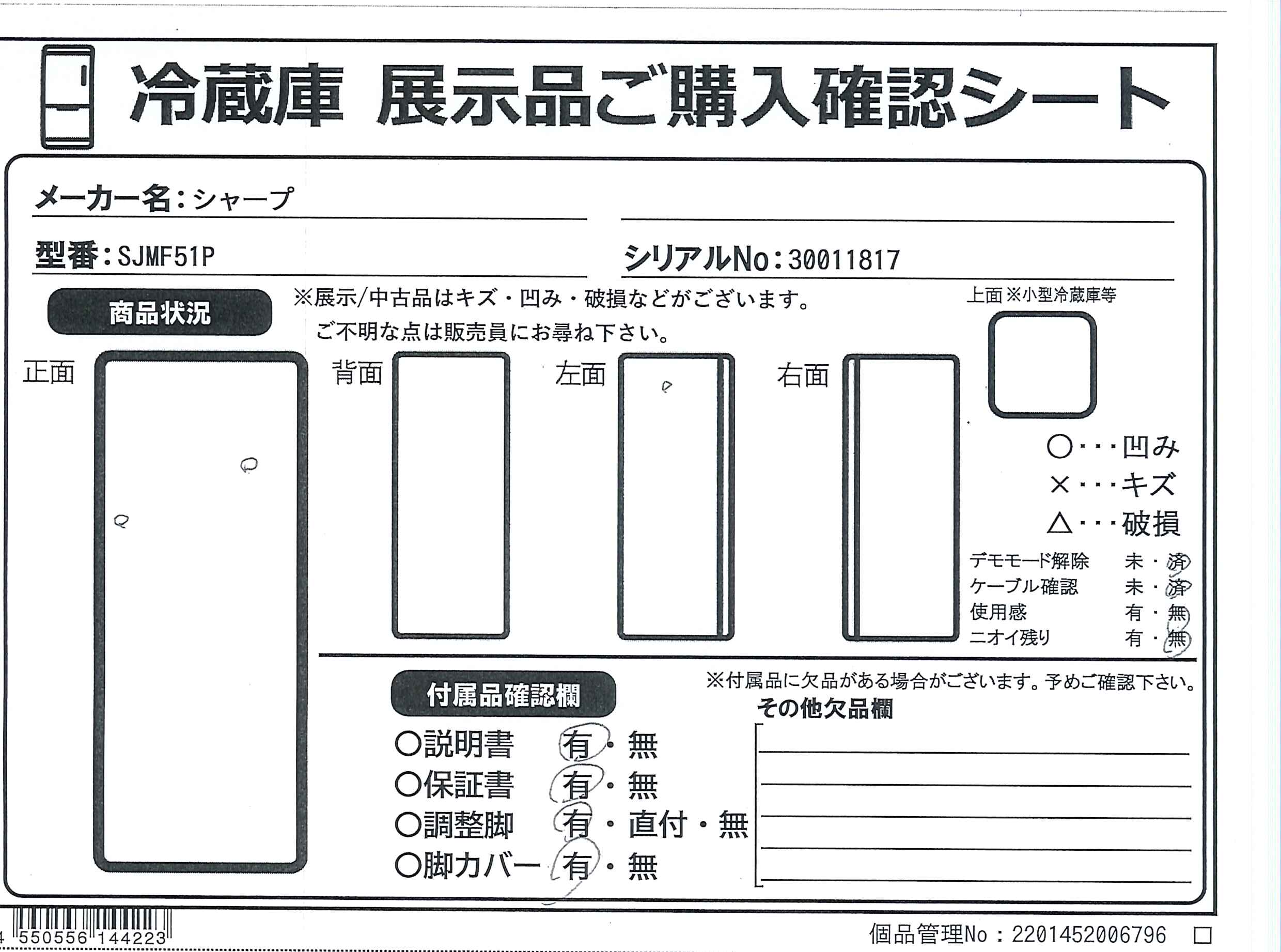 中古商品ランクについて 付属品・商品状態について 〔付属品〕取扱説明書、調節脚×2、ベースカバー、給水タンク一式、たまご仕切り、フレキシブルポケット、野菜ケーストレー、アイスシャベル、フレキシブルトレー、仕切り×2