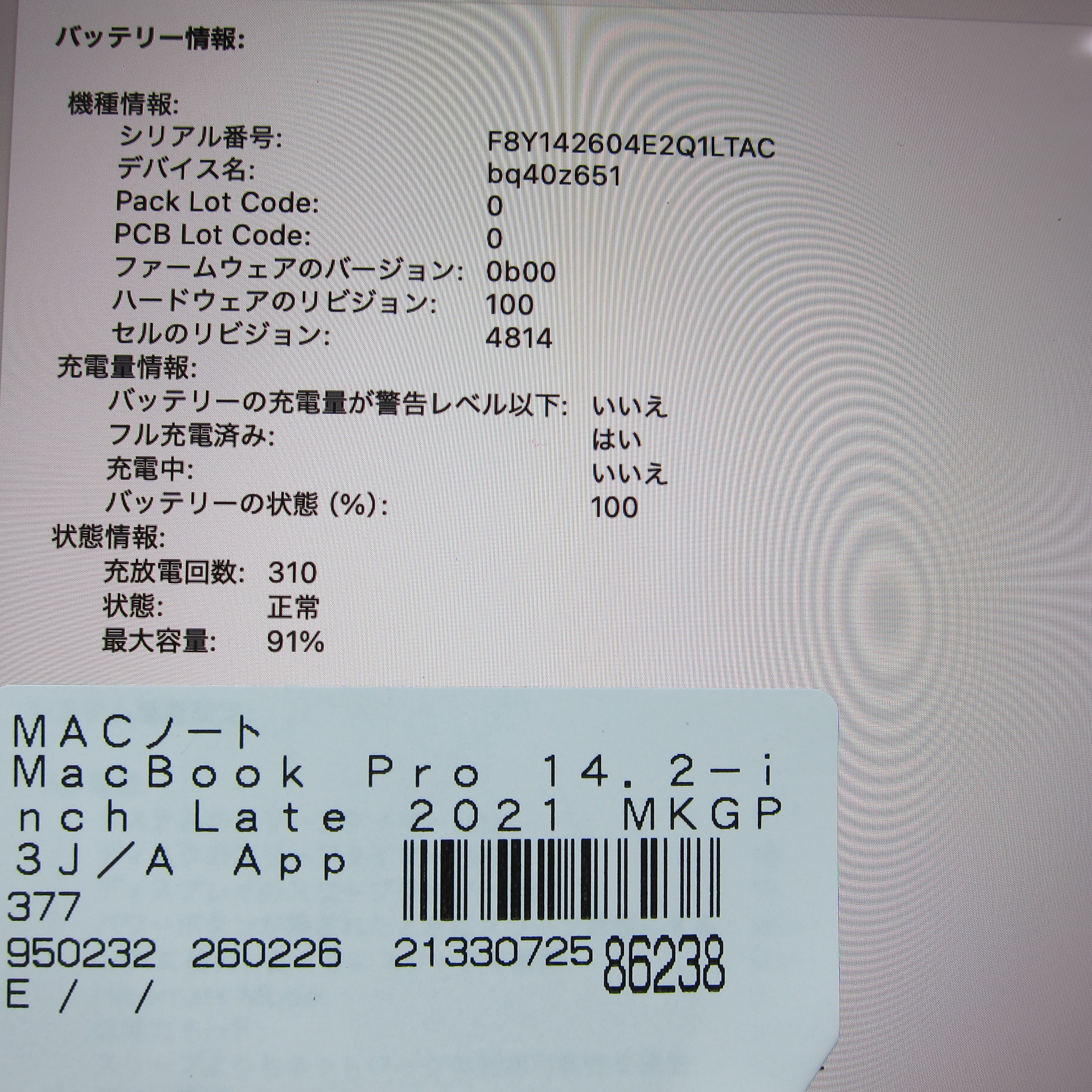〔中古品〕 MacBook Pro 14.2-inch Late-2021 MKGP3J/A Apple M1 Pro 8コアCPU_14コアGPU 16GB SSD512GB スペースグレイ 〔15.3 Sequoia〕 [グラフィック:オンボード/その他海外キーボード]