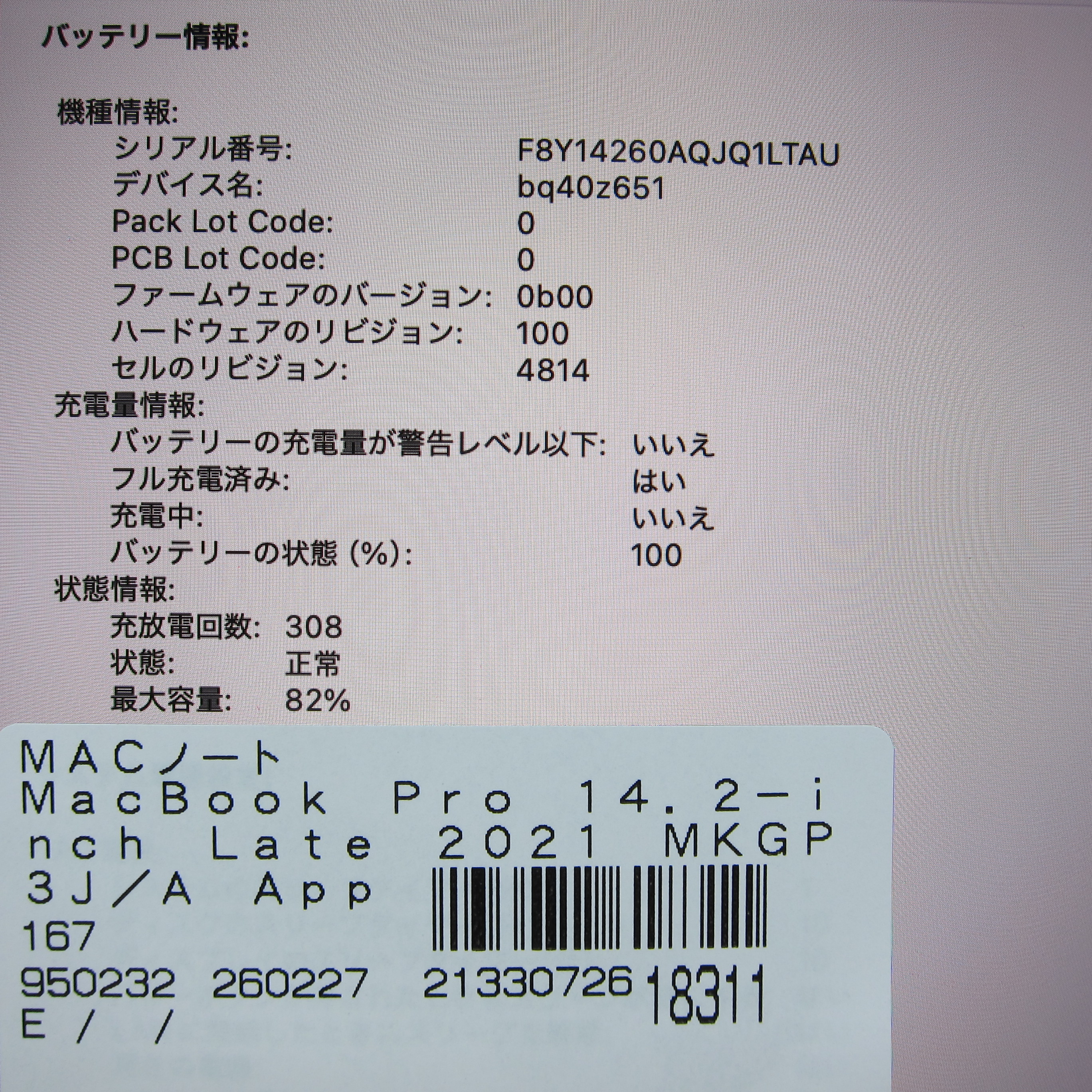 〔中古品〕 MacBook Pro 14.2-inch Late-2021 MKGP3J/A Apple M1 Pro 8コアCPU_14コアGPU 16GB SSD1TB スペースグレイ 〔15.3 Sequoia〕 [グラフィック:オンボード/JISキーボード]