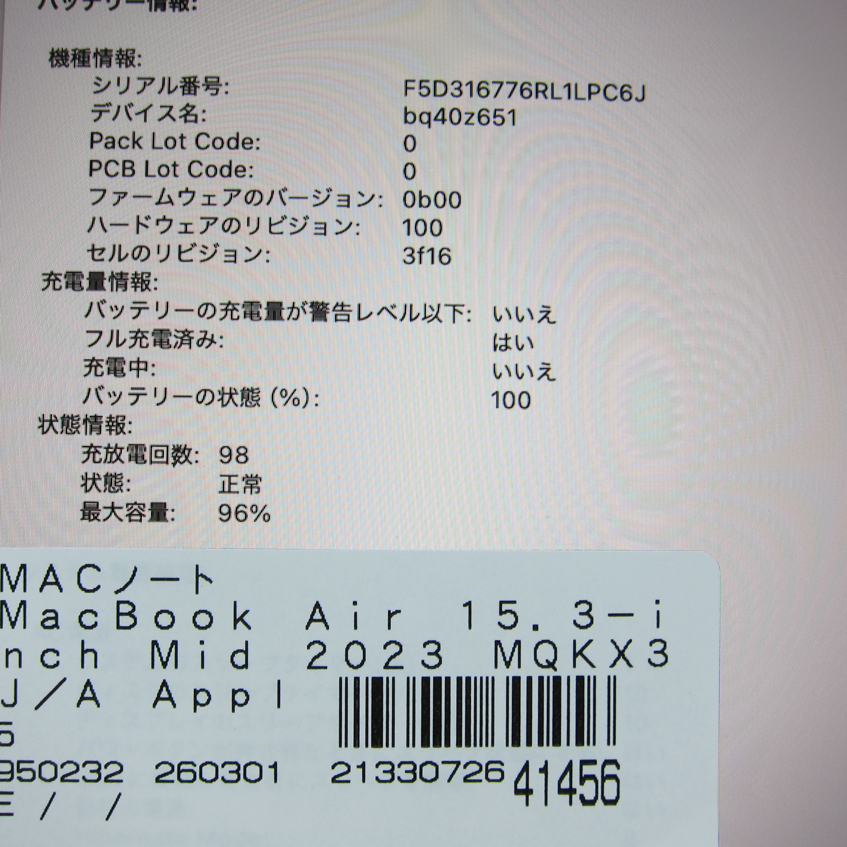 〔中古品〕 MacBook Air 15.3-inch Mid-2023 MQKX3J/A Apple M2 8コアCPU_10コアGPU 8GB SSD512GB ミッドナイト 〔15.3 Sequoia〕 [グラフィック:オンボード/JISキーボード]