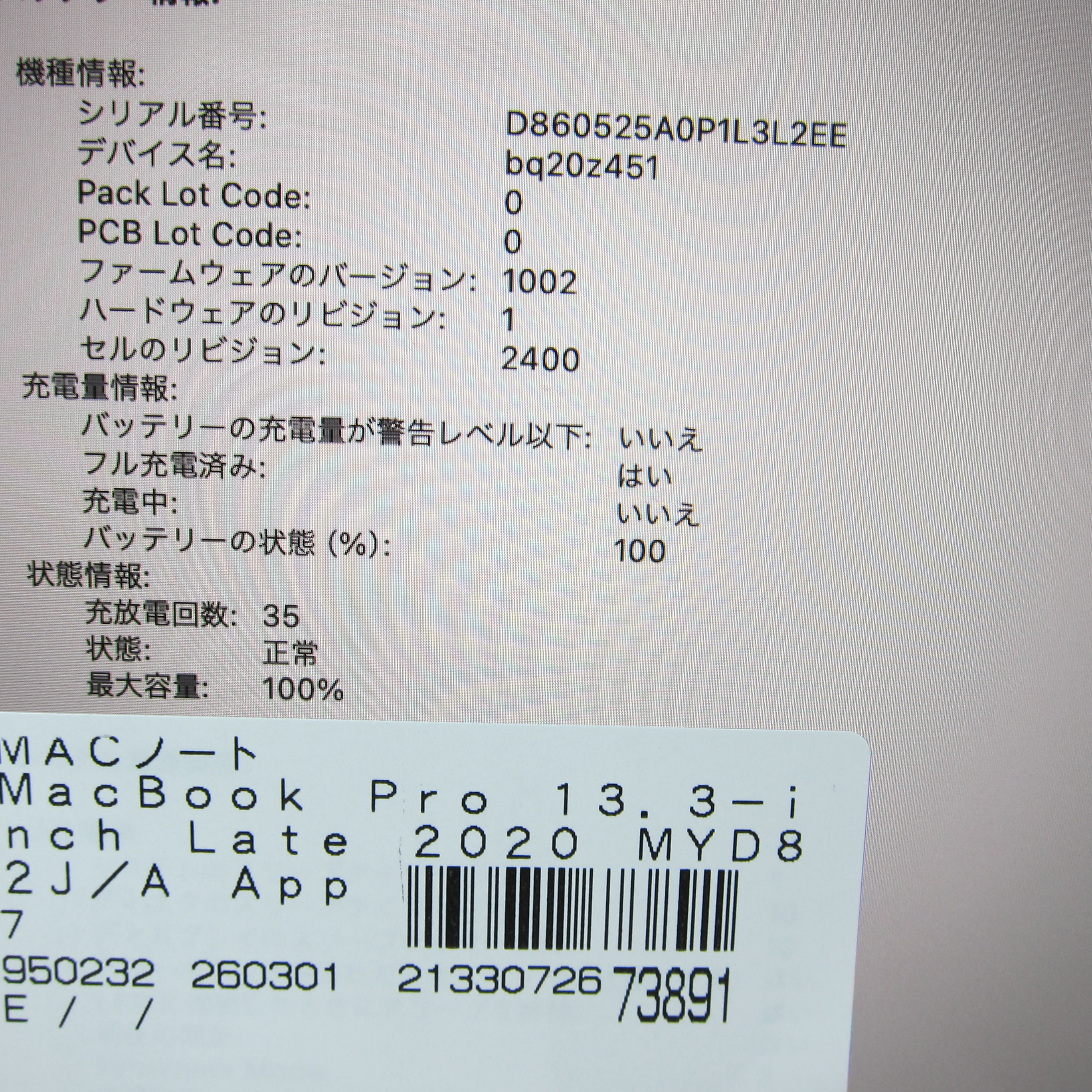 商品名 〔中古品〕 MacBook Pro 13.3-inch Late-2020 MYD82J/A Apple M1 8コアCPU_8コアGPU 8GB SSD256GB スペースグレイ 〔14.7 Sonoma〕 [グラフィック:オンボード/JISキーボード]