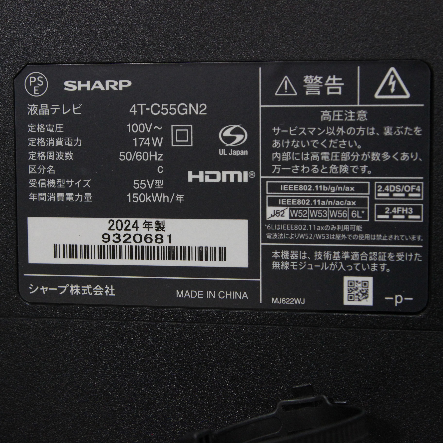 〔展示品〕 液晶テレビ AQUOS ブラック 4T-C55GN2 [55V型 /Bluetooth対応 /4K対応 /BS・CS 4Kチューナー内蔵 /YouTube対応]